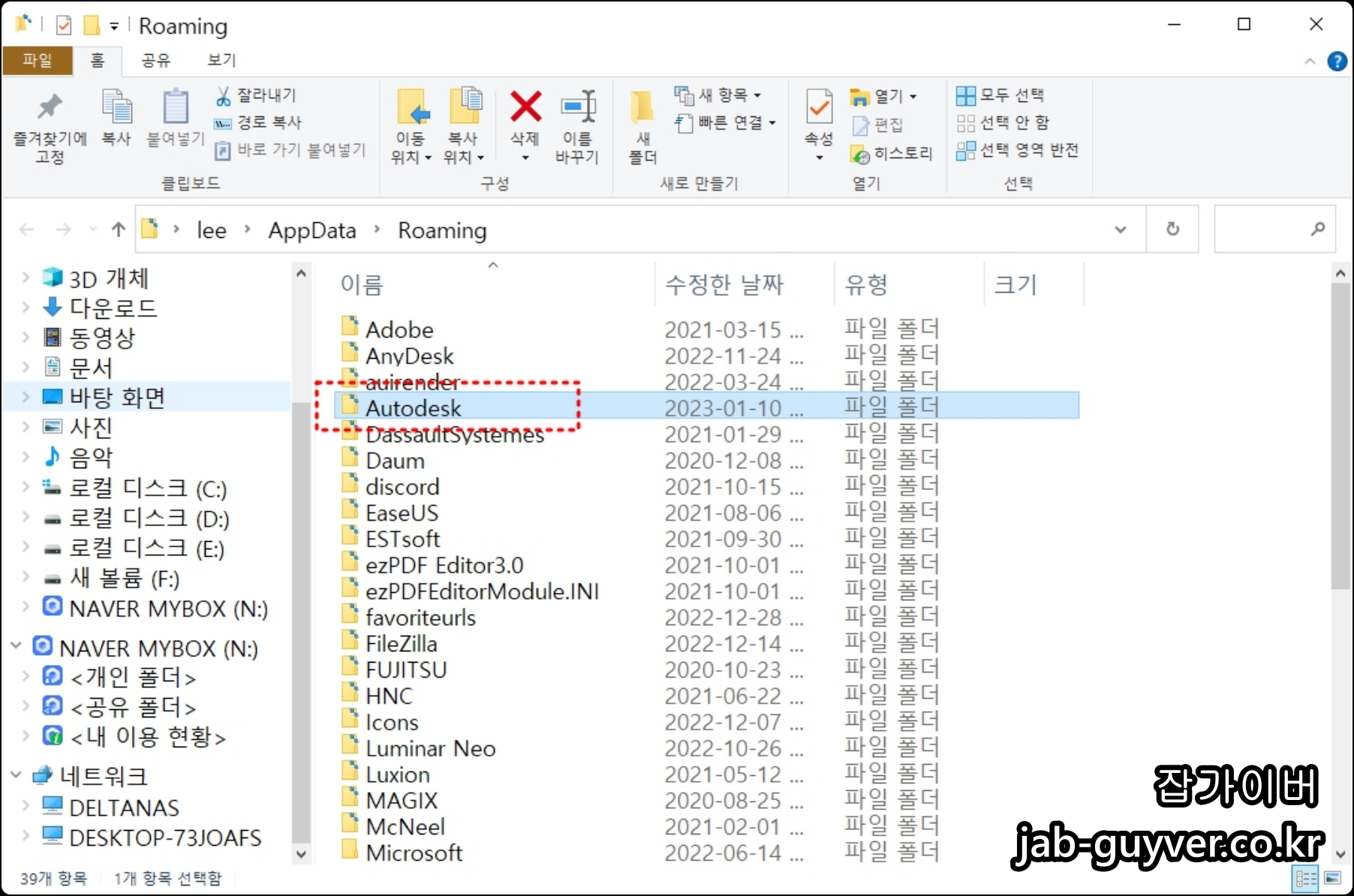 이후 아래 경로에 있는 Autodesk 폴더를 모두 삭제합니다.