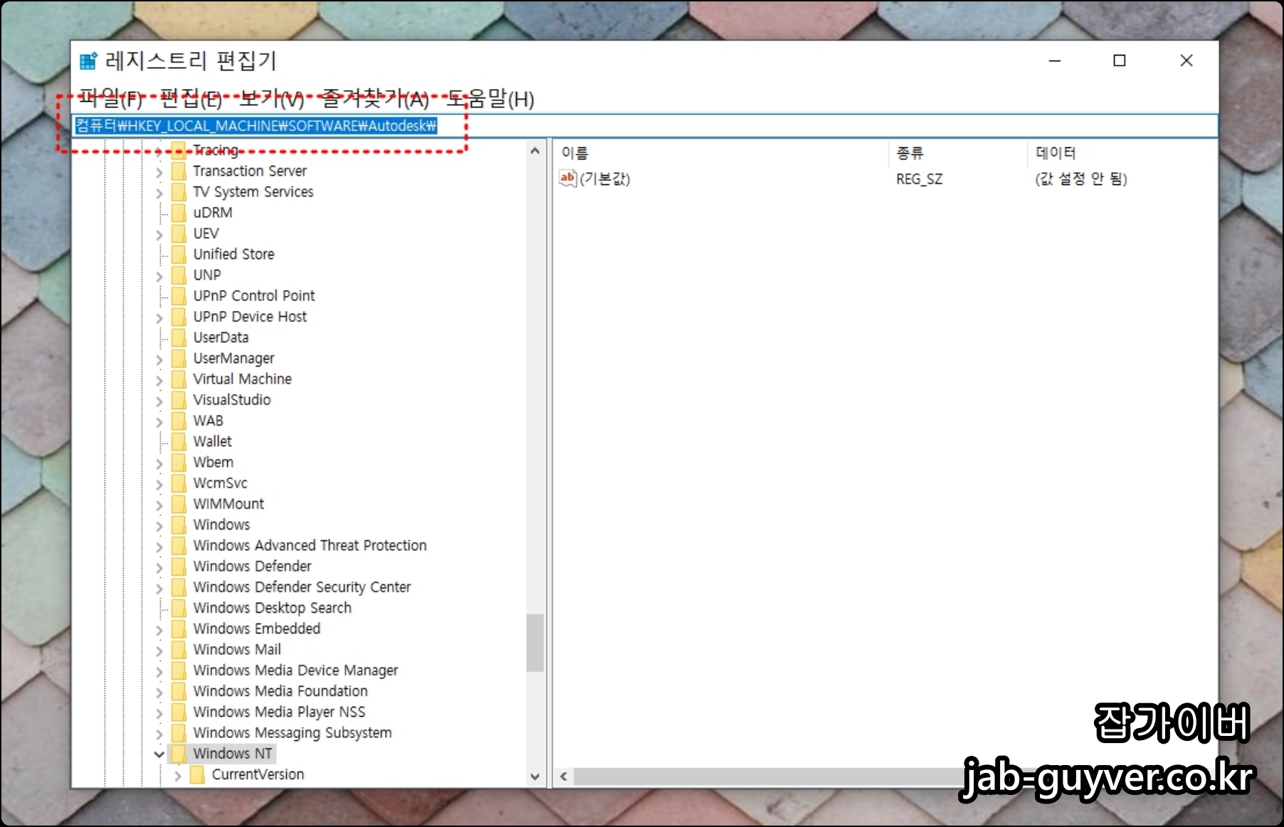 아래 경로 2군대에 들어가 오토데스크 레지스트리를 삭제합니다.