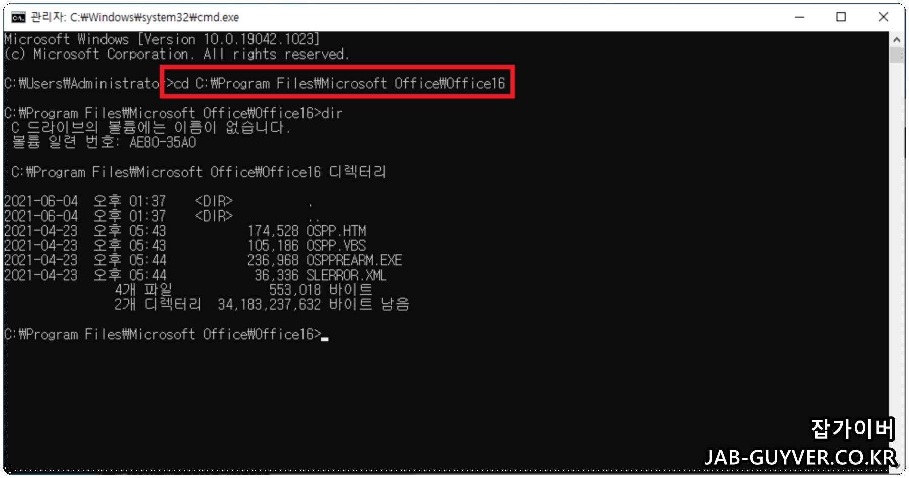 명령어 : cd C:\Program Files\Microsoft Office\Office16
