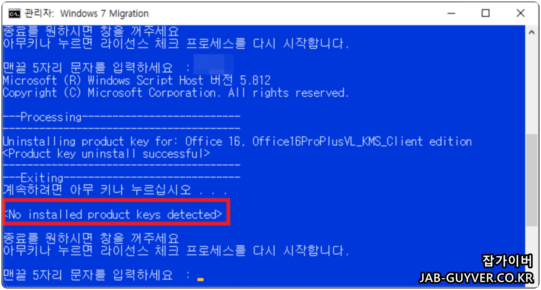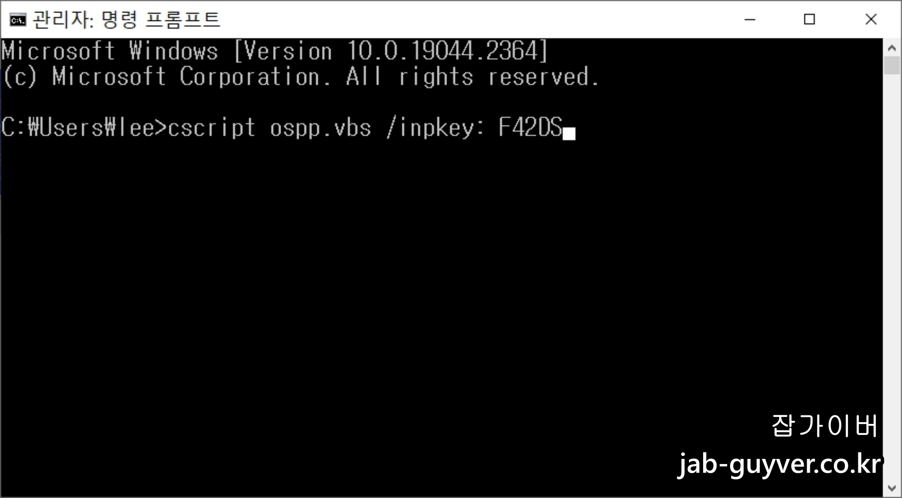 cscript ospp.vbs /inpkey:제품키 5자리