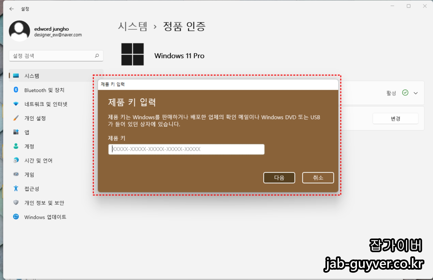 윈도우 제품키 등록방법