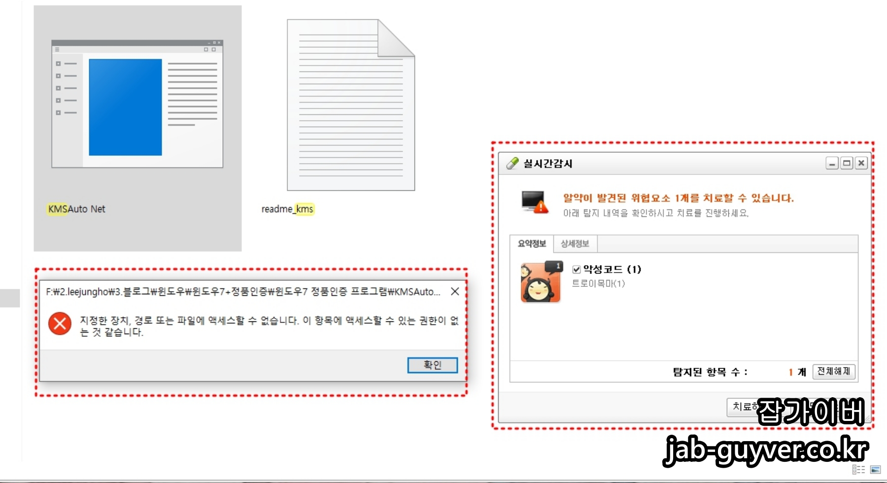 그렇기 때문에 이러한 KMSAutoNet 등의 윈도우 크랙을 실행 시 윈도우디펜더 및 실시간감시에서 지정한 장치, 경로 또는 파일에 엑세스할 수 없습니다. 이 항목에 액세스할 수 있는 권한이 없느거 같습니다. 와 같은 알림으로 프로그램 실행이 차단됩니다.