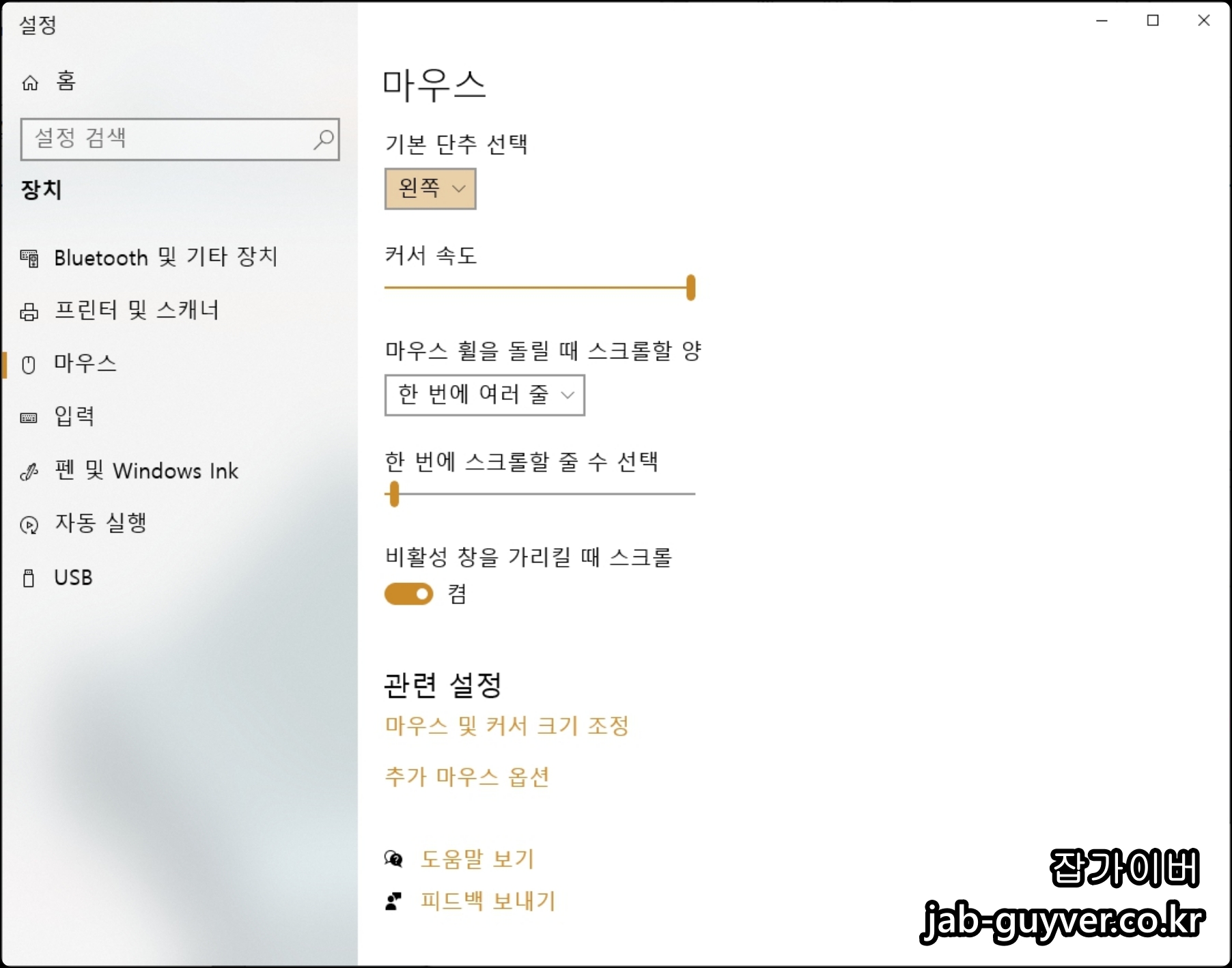 윈도우10 마우스 클릭 설정 및 감도조절