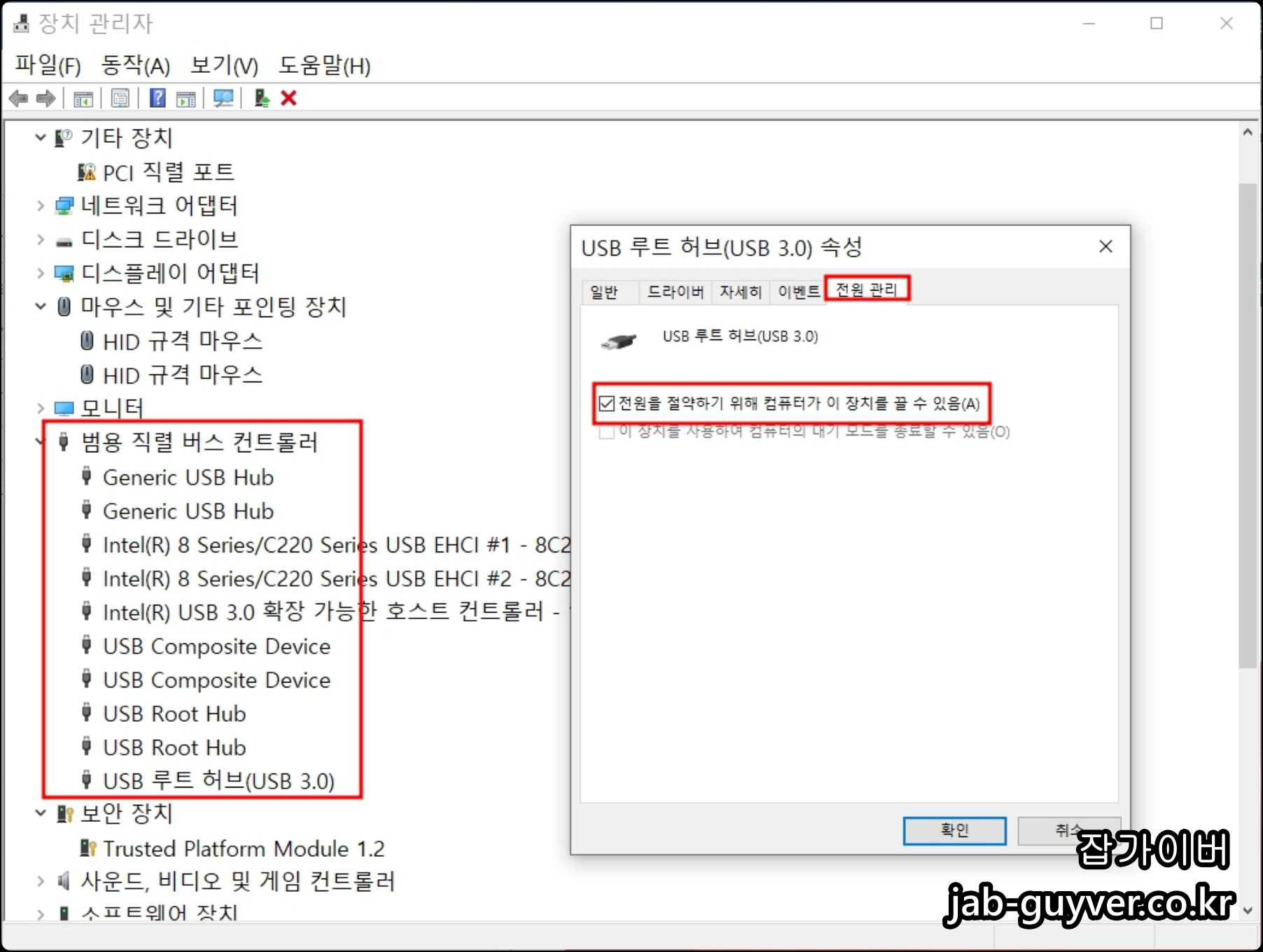 그 외에도 전원관리로 들어가면 전원을 절약하기 위해 컴퓨터가 이 장치를 끌 수 있음 항목이 있는데 블루투스 키보드 및 블루투스 마우스등 사용하지 않을 때 절전모드로 들어가서 수면모드가 해제되지 않은경우 버벅거릴 수 있도 있습니다.