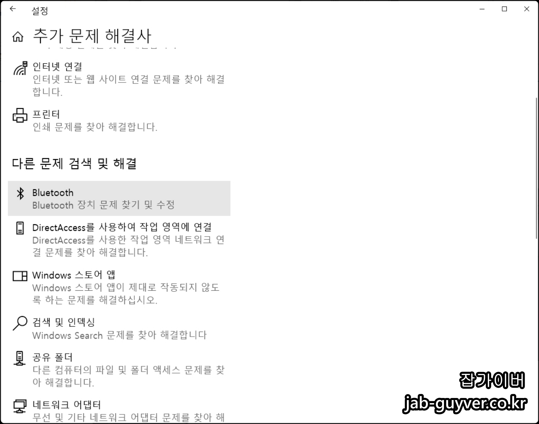 추가 문제 해결사 -> 들어가면 블루투스 항목에 대한 문제를 찾아 수정합니다.
