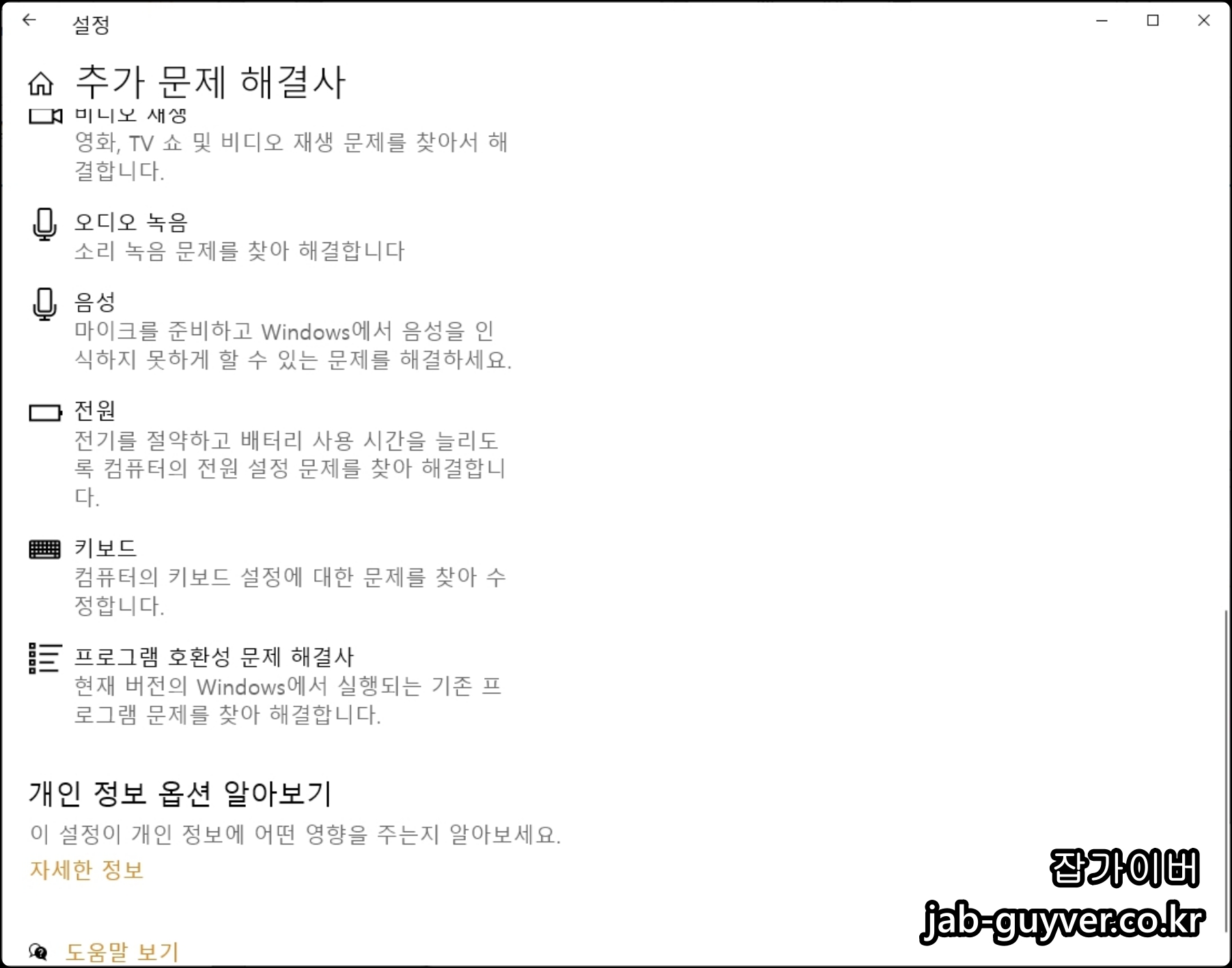 그 외에도 키보드 문제 해결사를 선택해 키보드 오류도 찾아 치료합니다.