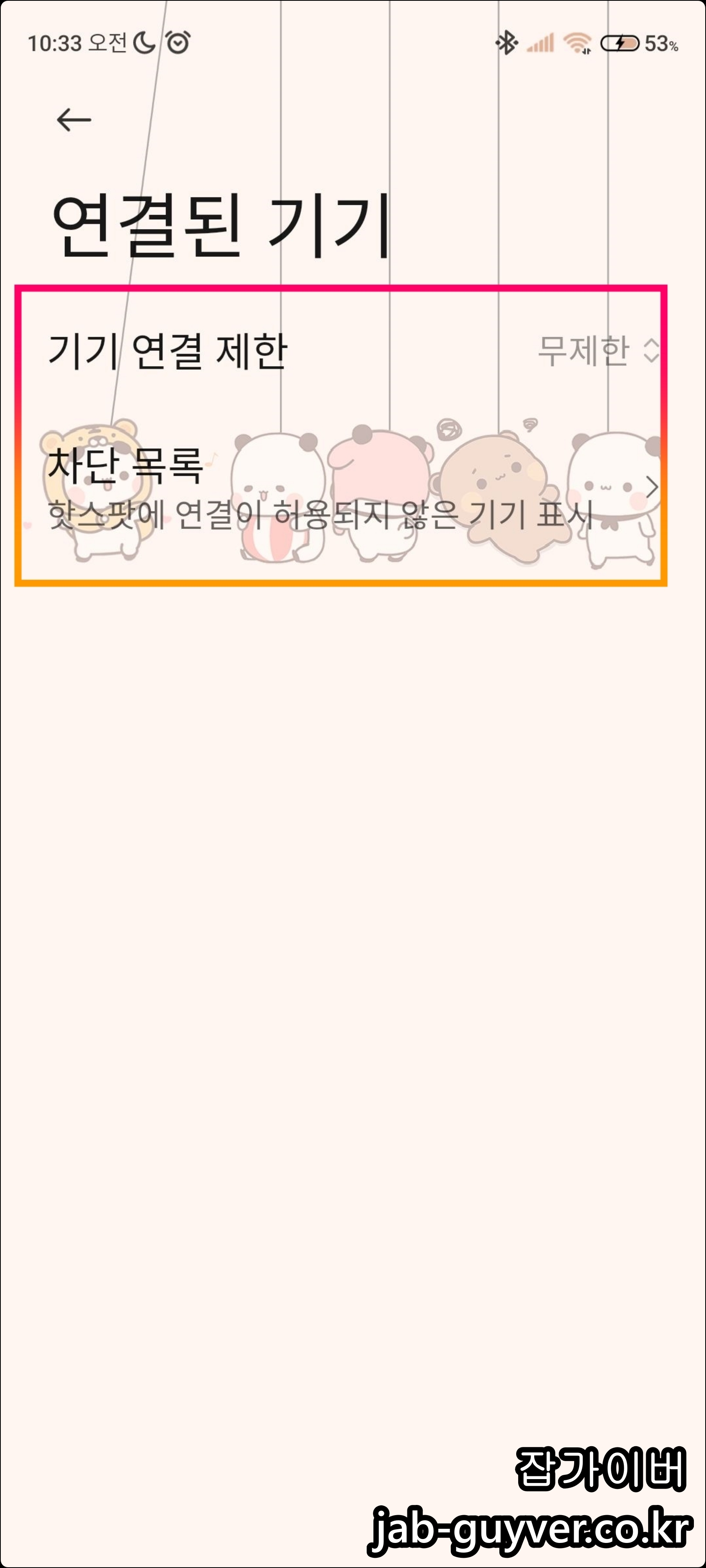 그 외에도 외부에서 알수 없는 장비가 테더링을 계속 시도하거나 해킹 개인정보 유출이 걱정된다면 와이파이 데이터 테더링 연결기기를 제한할 수 있습니다