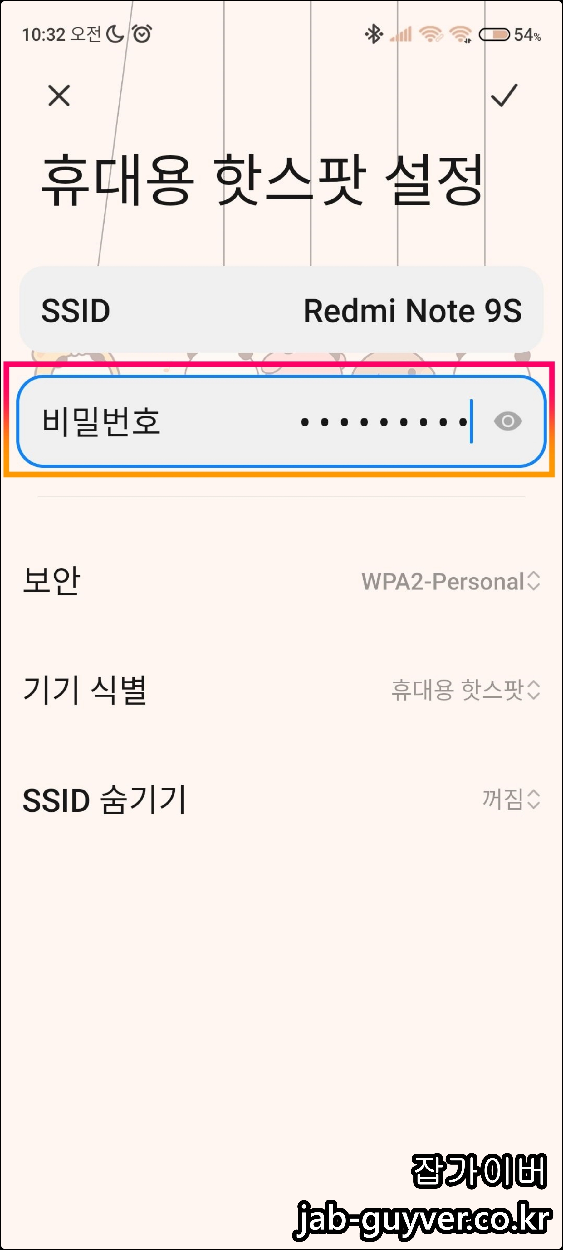 그리고 테더링 비밀번호를 설정해 놓아야 다른사람들이 핫스팟 연결을 차단할 수 있습니다.