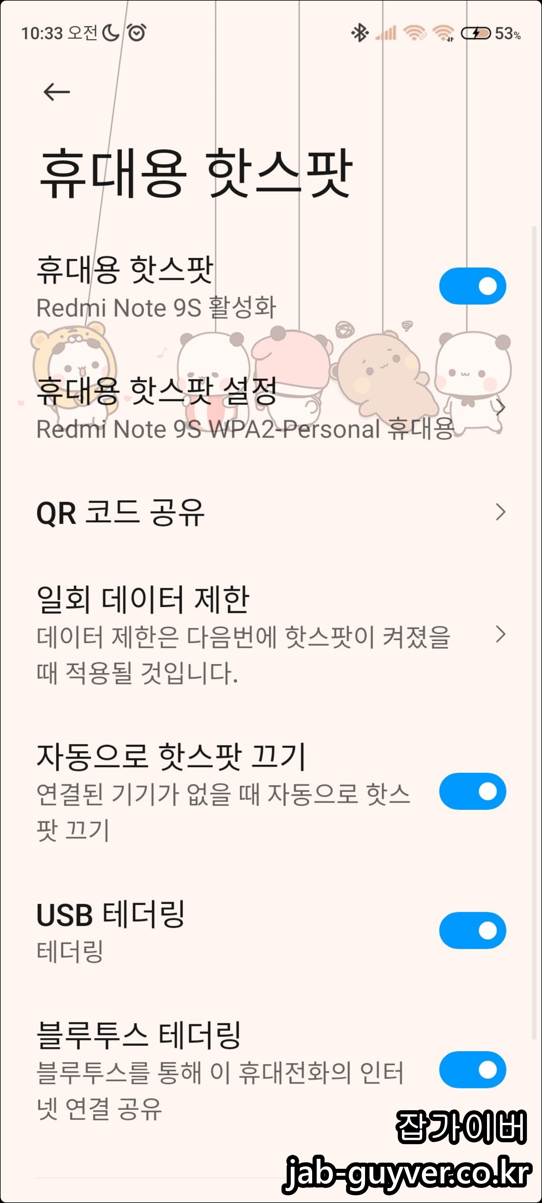 핸드폰 테더링 노트북 와이파이 핫스팟 블루투스인터넷 연결방법
