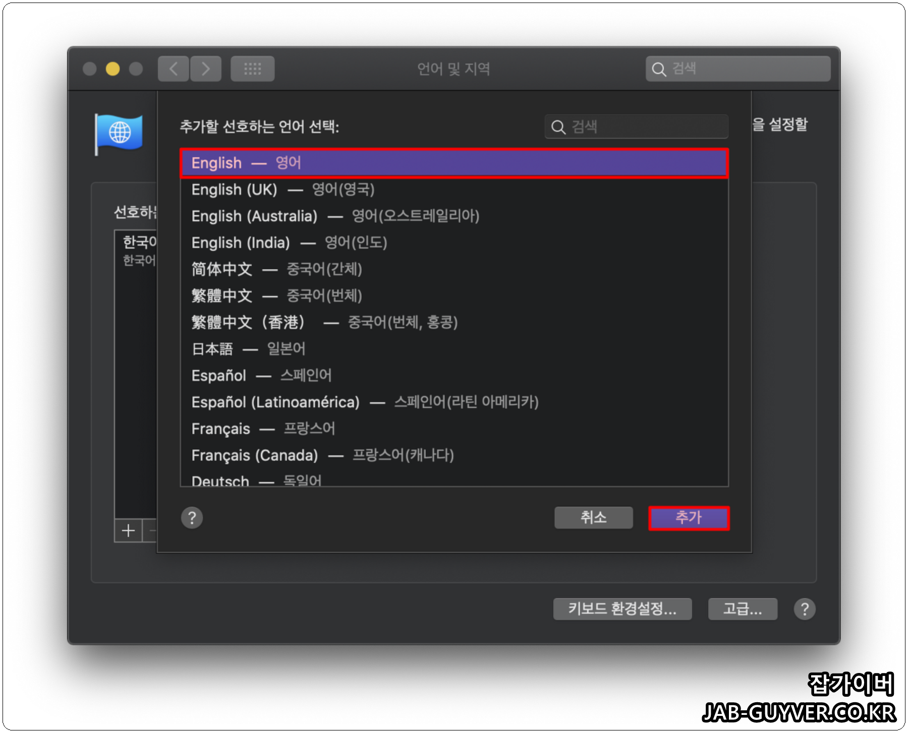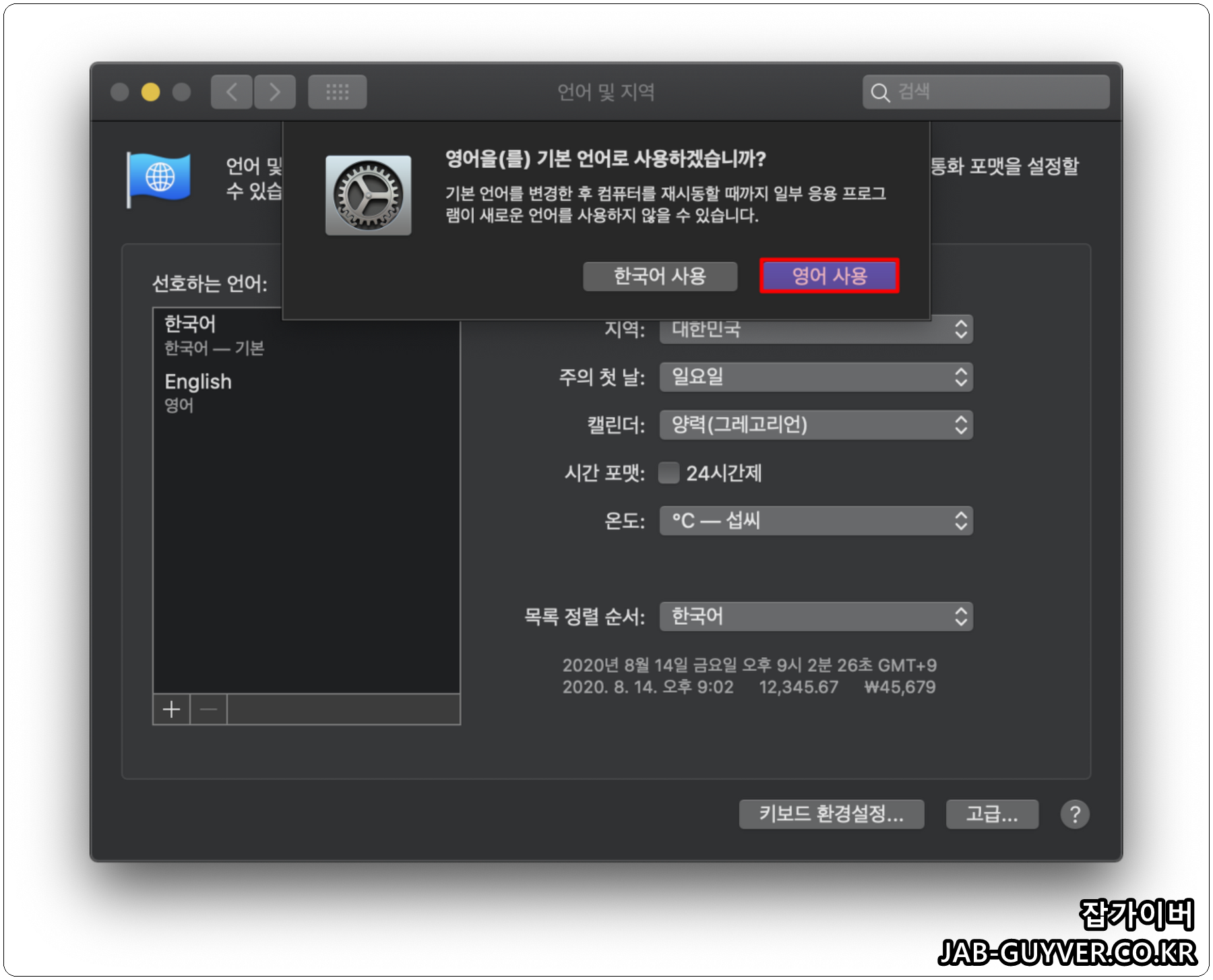 맥북 한글 영문판 언어변경 MacOS 국가 지역설정
