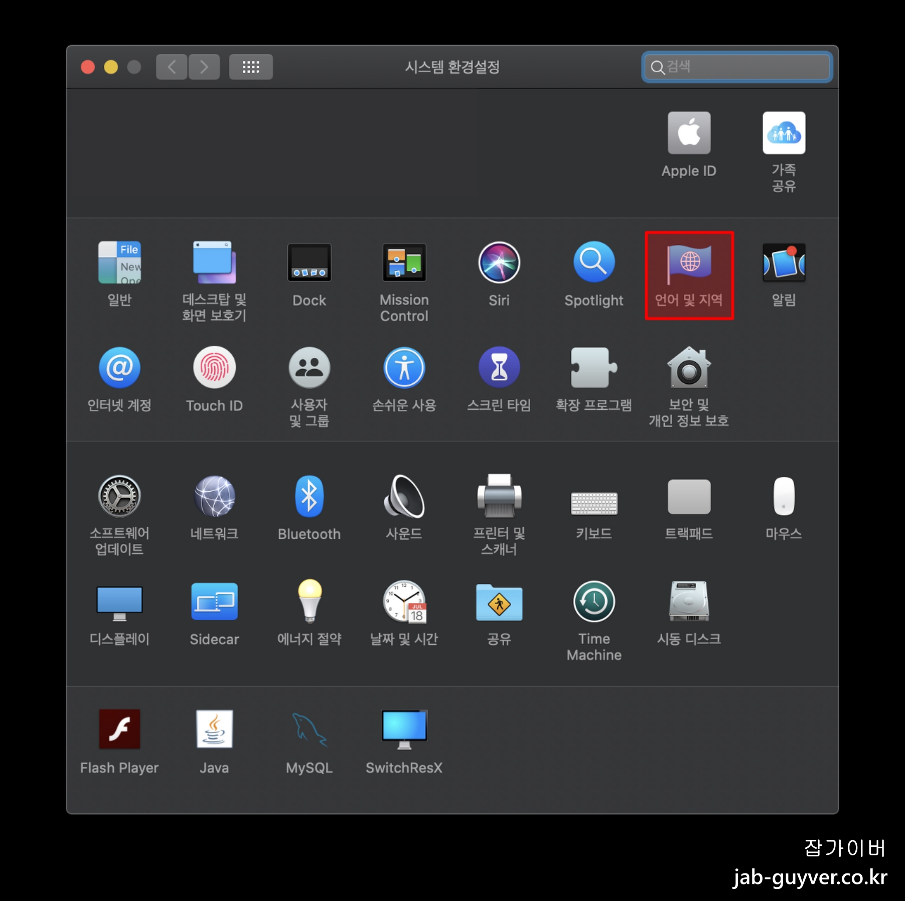 한글판 맥북 운영체제라면 언어 및 지역으로 들어갑니다.