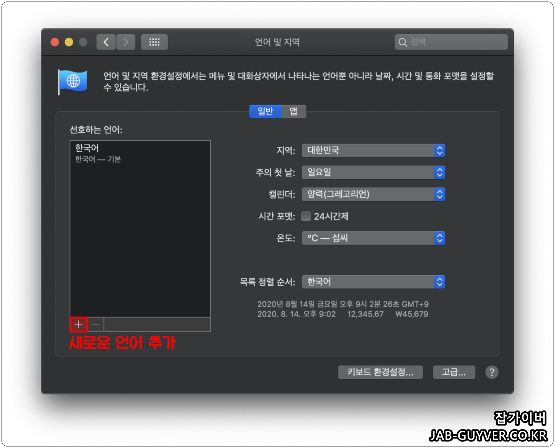 그럼 현재 설치 된 맥 운영체제 언어가 한국어로 기본언어로 설정되어 있습니다.