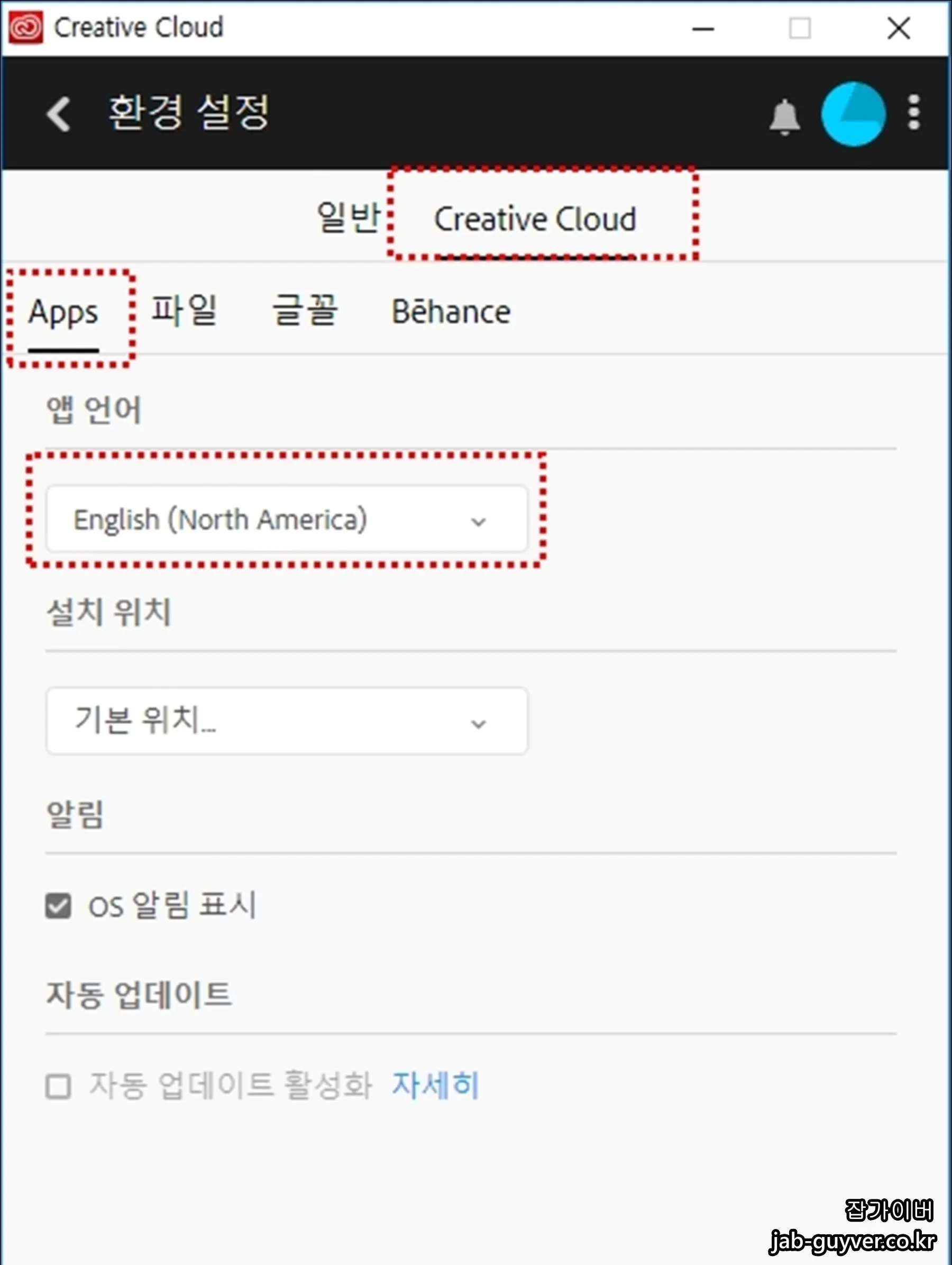 Adobe CC 앱언어 변경