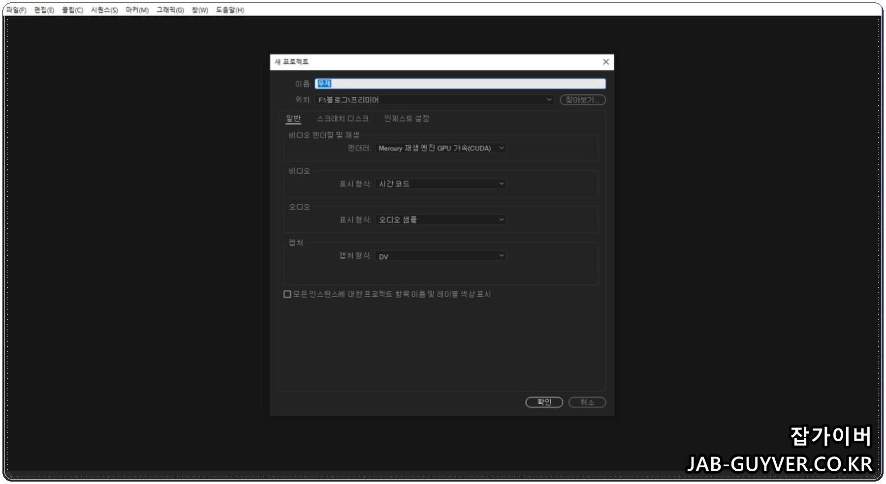 프리미어 프로젝트 설정 - 동영상 편집 자르기 저장방법 - Decre Yellow