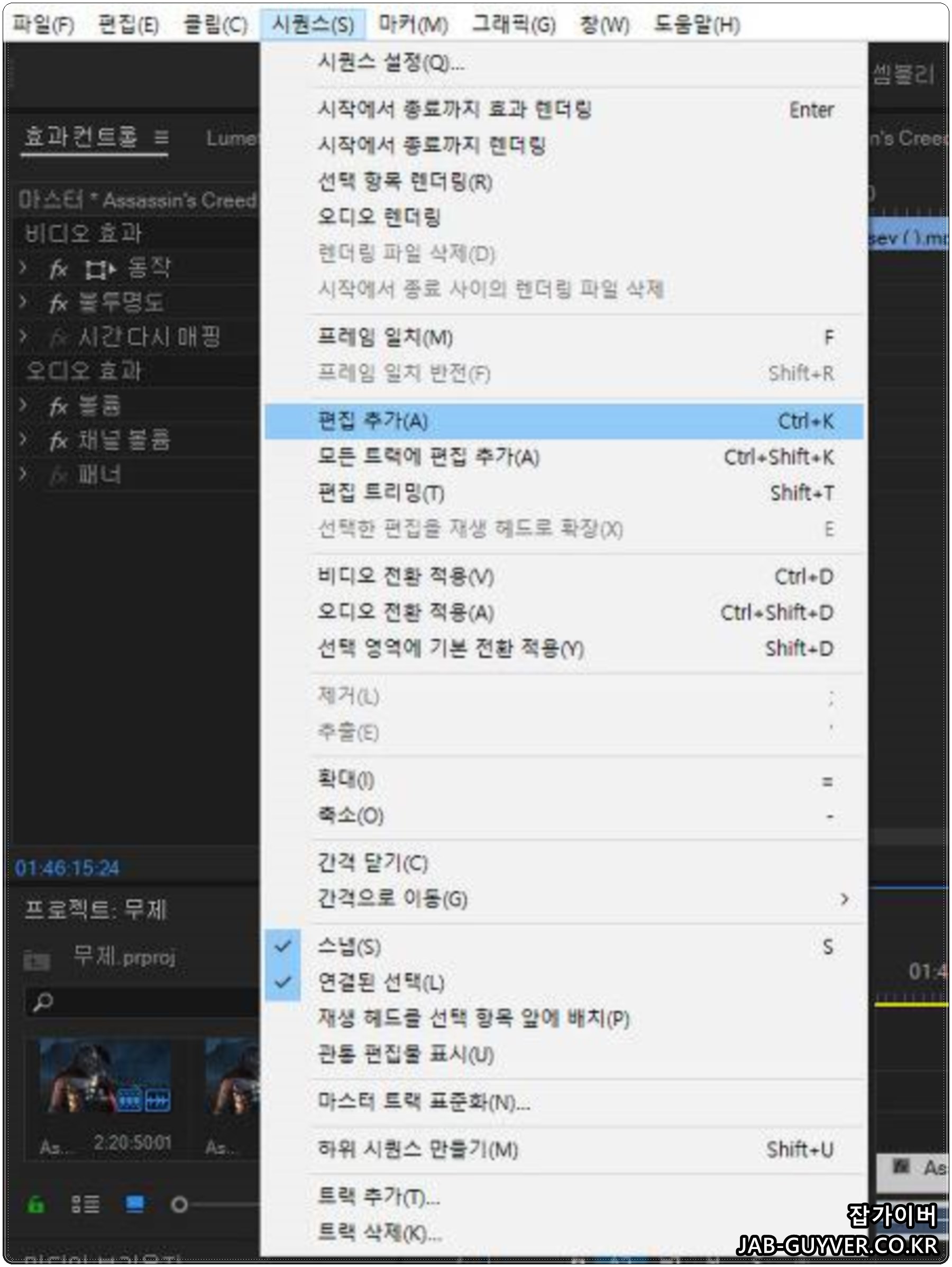 기본적으로 프리미어 동영상 편집 단축키는 아래 참고하세요
