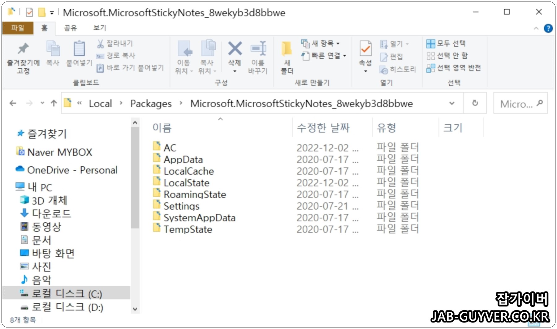 마이크로소프트의 스티커메모의 패지키 위치로 이동합니다.