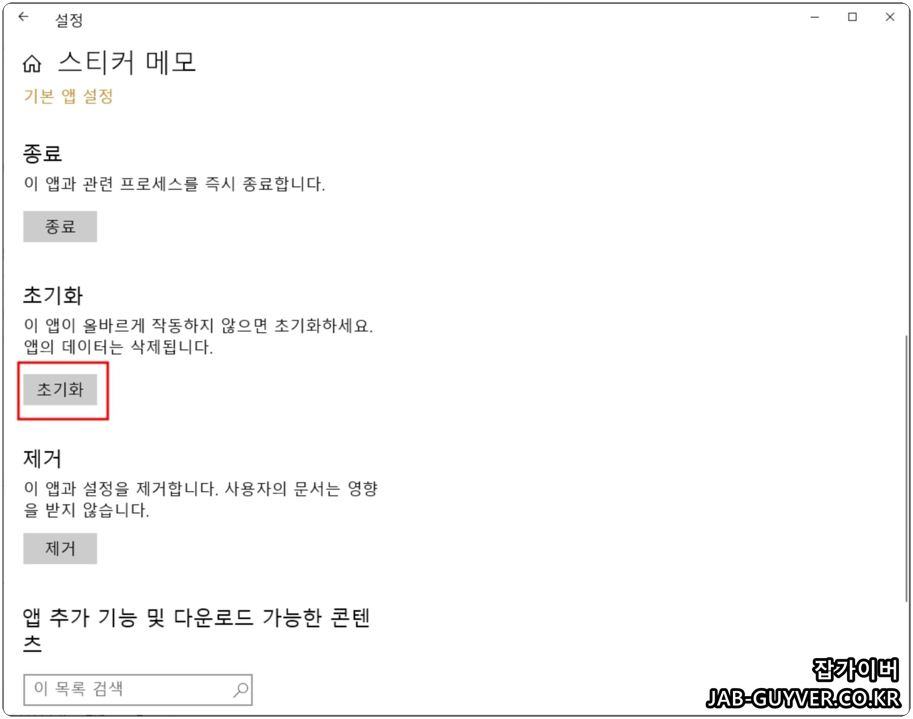 참고로 스티커메모 초기화 시 기존의 메모는 모두 삭제되기 때문에 기존 메모를 모두 백업해야 합니다.