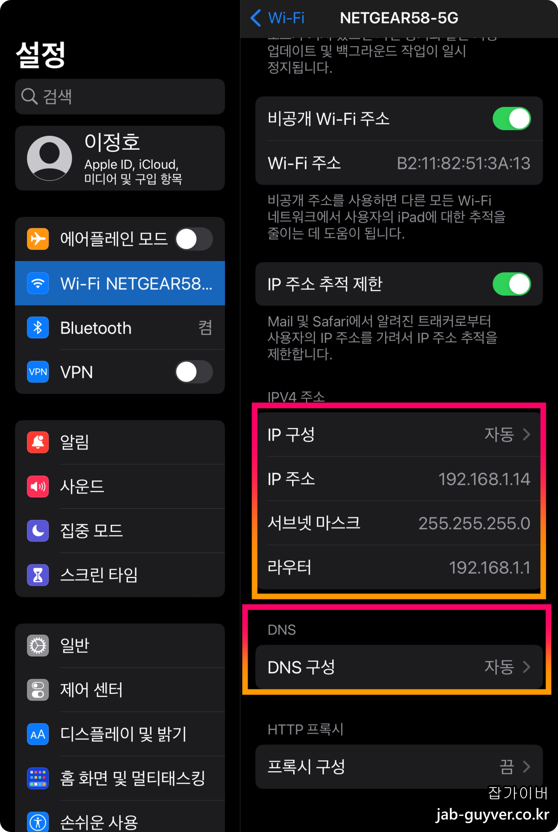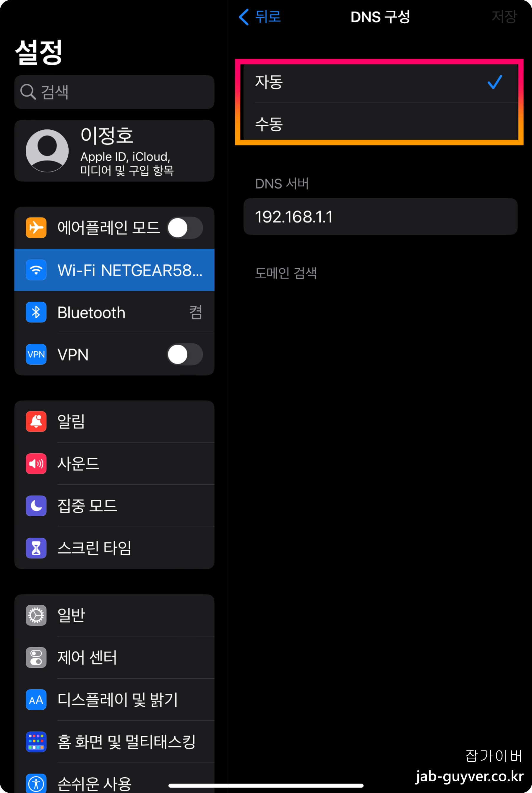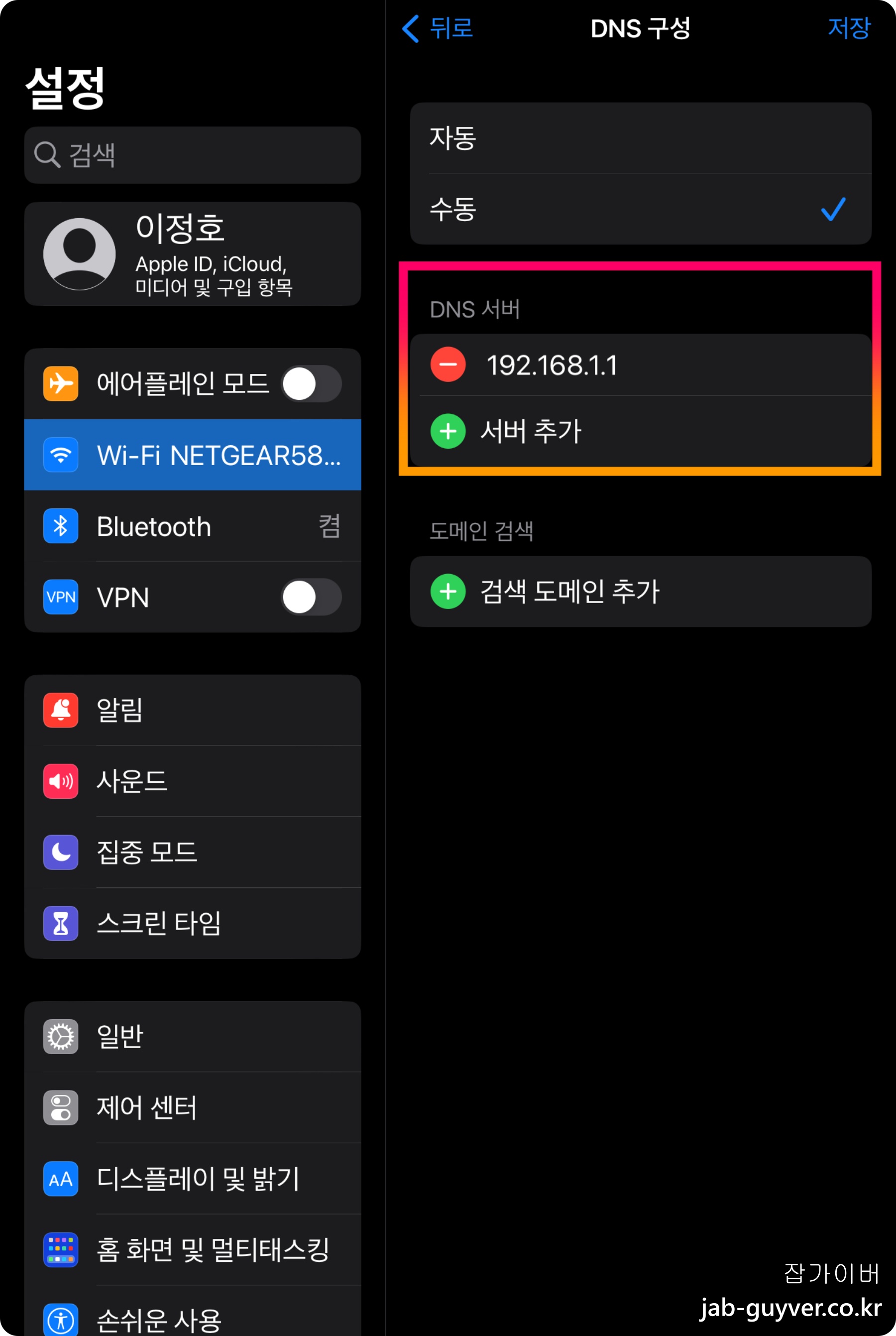 예를 들어 JAB-GUYVER.COM 같은 도메인을 사람이 기억하기 편한 이름으로 쓰고, 실제로는 숫자로 된 IP 주소로 접속하게 만드는 시스템이 바로 DNS입니다. 아이폰·아이패드에 설정된 DNS 값을 직접 바꿔주면 트래픽이 통과하는 서버가 달라지기 때문에, 광고나 추적을 줄이고, 경우에 따라 차단된 사이트 접속이 가능해질 때도 있습니다.