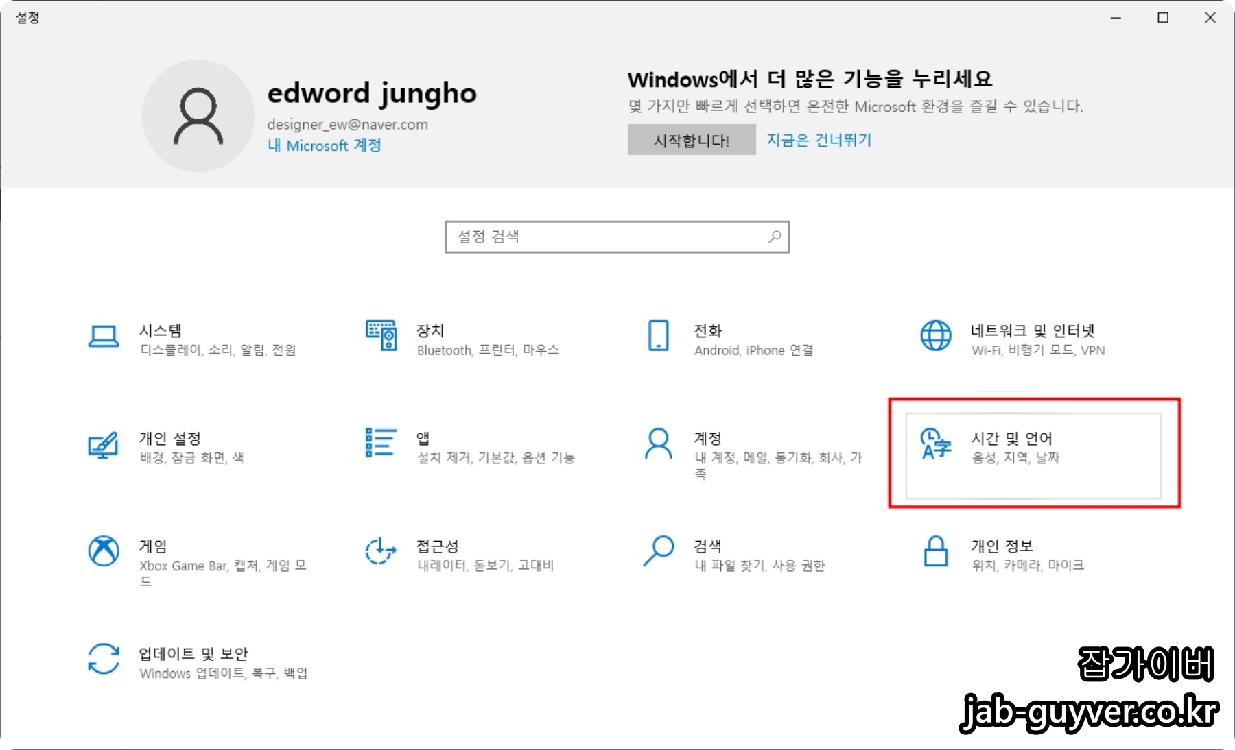 윈도우 키 + i → 설정 → 시간 및 언어로 이동합니다.