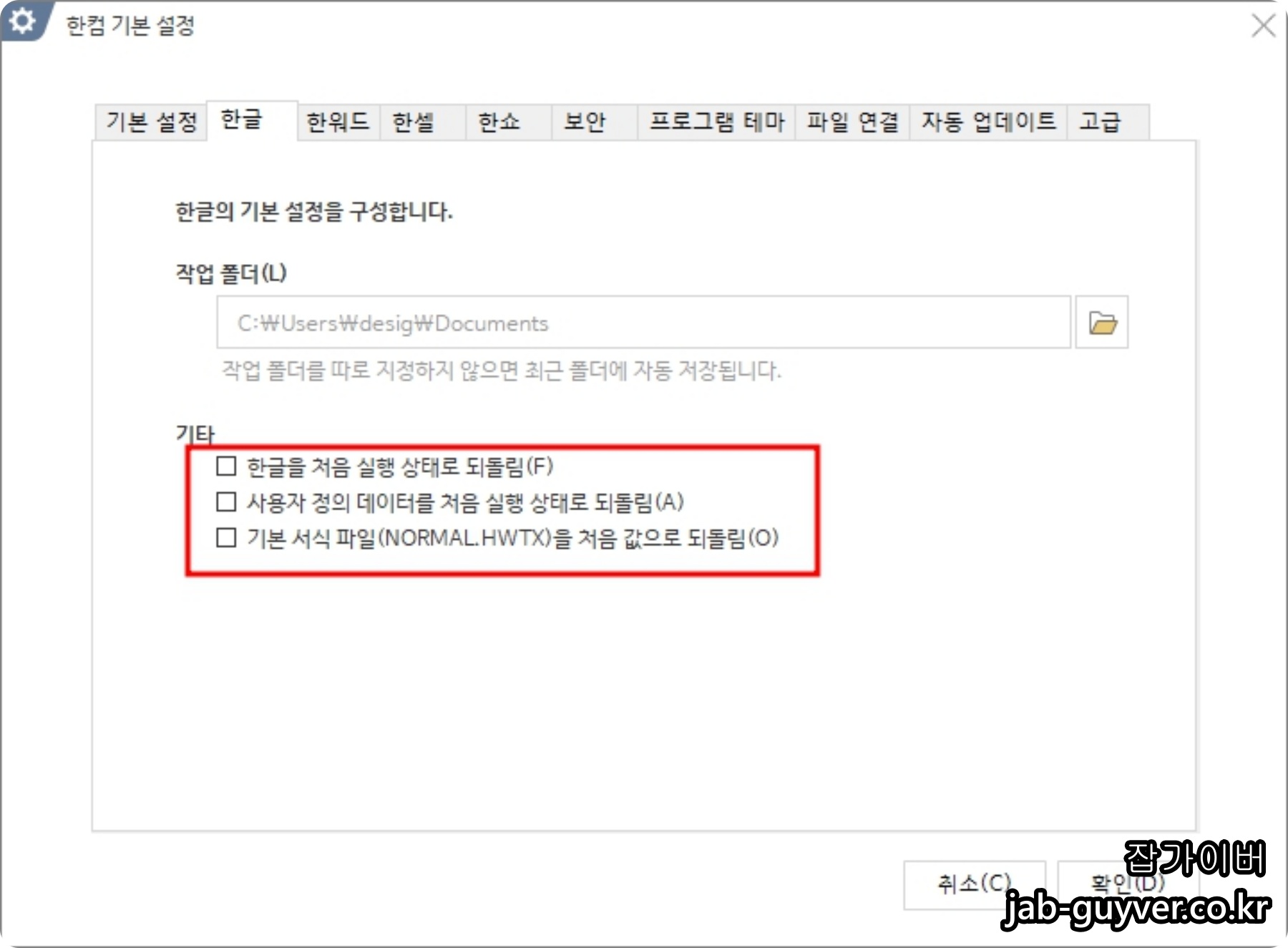 한컴오피스가 계속 멈추거나 실행이 안 된다면, 마지막으로 설정을 기본값으로 되돌리는 게 가장 빠릅니다.