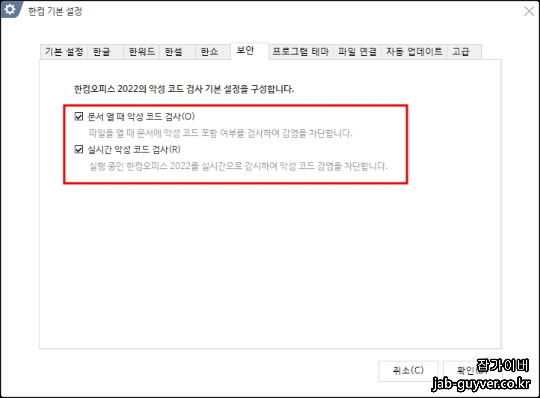 문서의 데이터보안을 위해 한컴오피스 문서 실행 시 실시간 악성코드 검사하고 감염된 문서를 차단해 컴퓨터 보안을 최적화합니다.