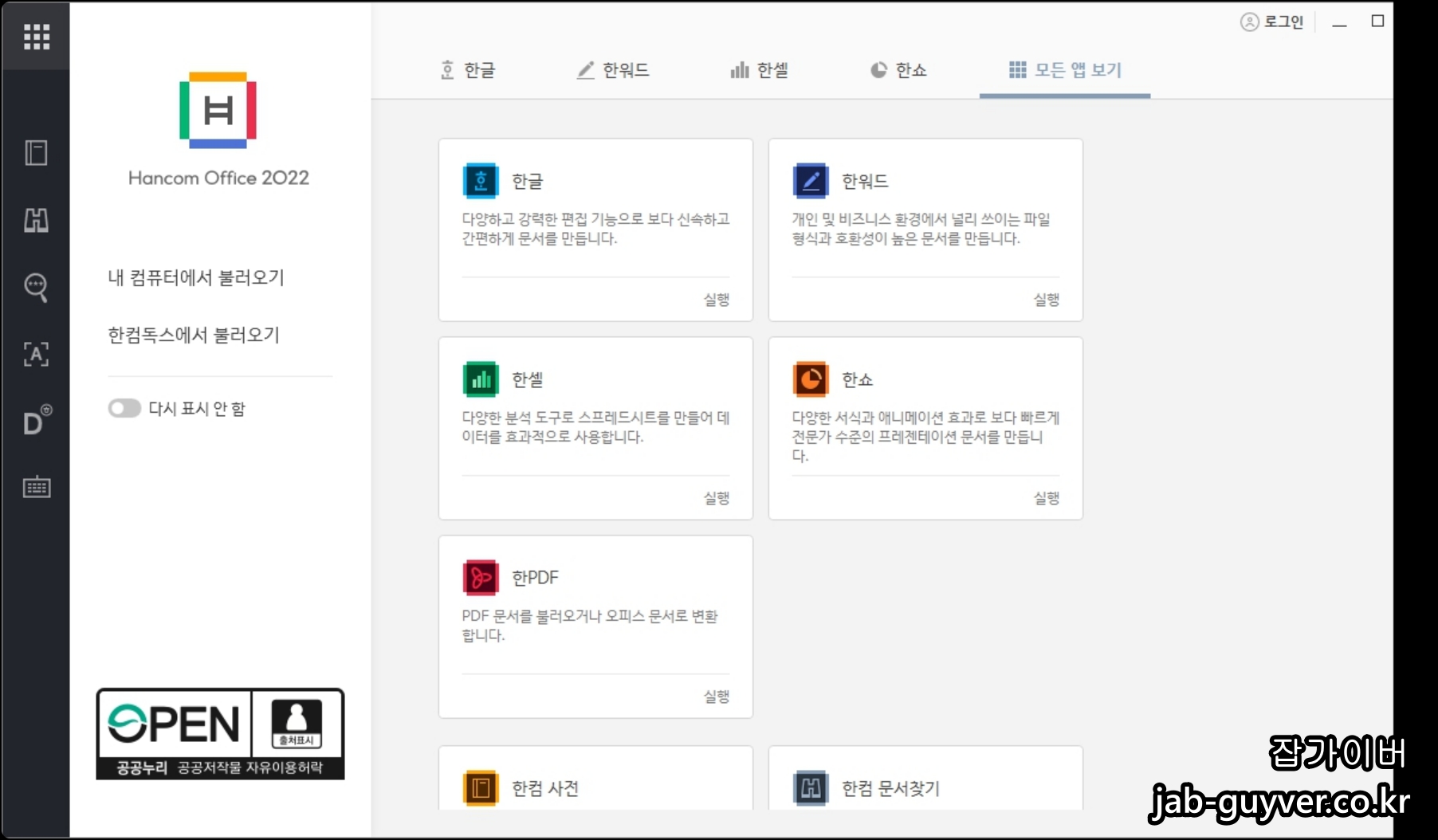 한컴오피스 2022에는 한글, 한워드 한셀, 한쇼, 한PDF, 한컴사전, 한컴 문서찾기등 다양한 어플리케이션을 제공합니다.