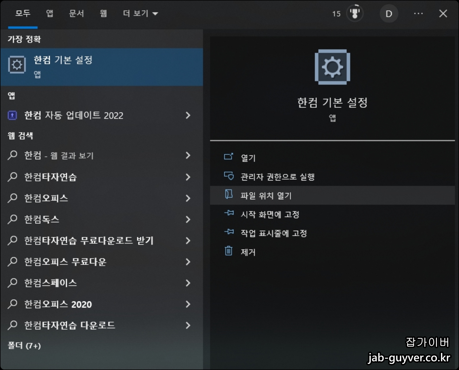 한컴오피스 한글2022 초기화 - 설정오류 리셋