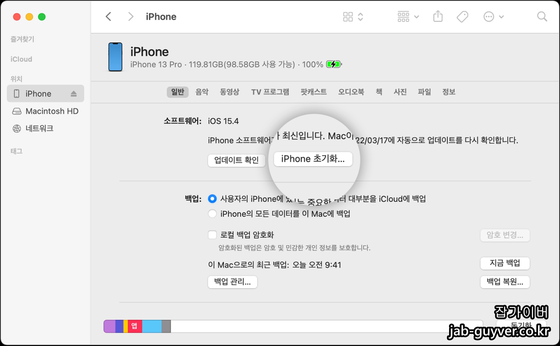 단 초기화를 진행하기 전, iCloud나 iTunes 백업이 되어 있지 않다면 복구는 불가능합니다.