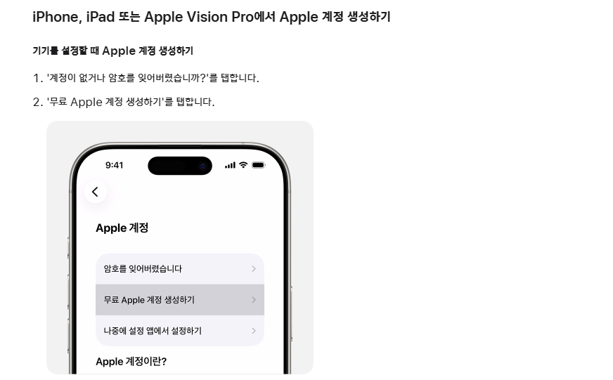 • Apple ID 정보가 없는 경우 → 사용 불가