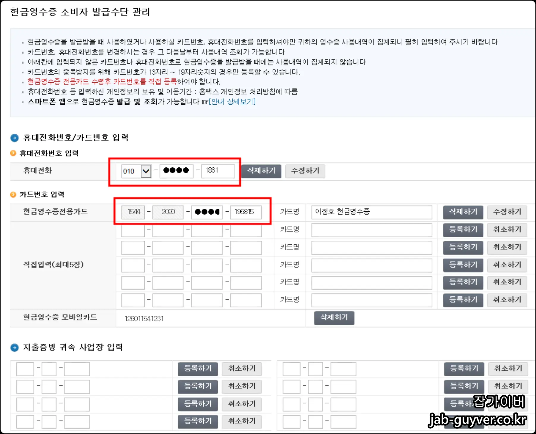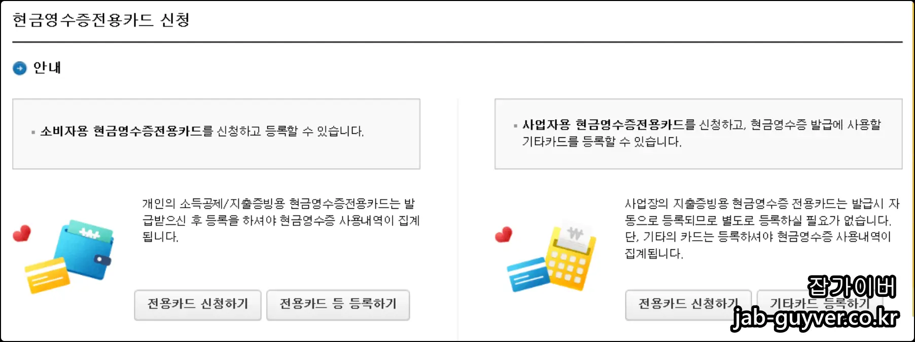 현금영수증 카드등록 및 카드발급 신청방법