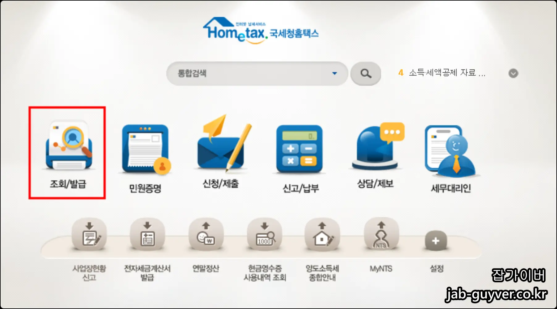 공인인증서를 이용해 로그인이 완료되었다면 조회 / 발급을 선택합니다.