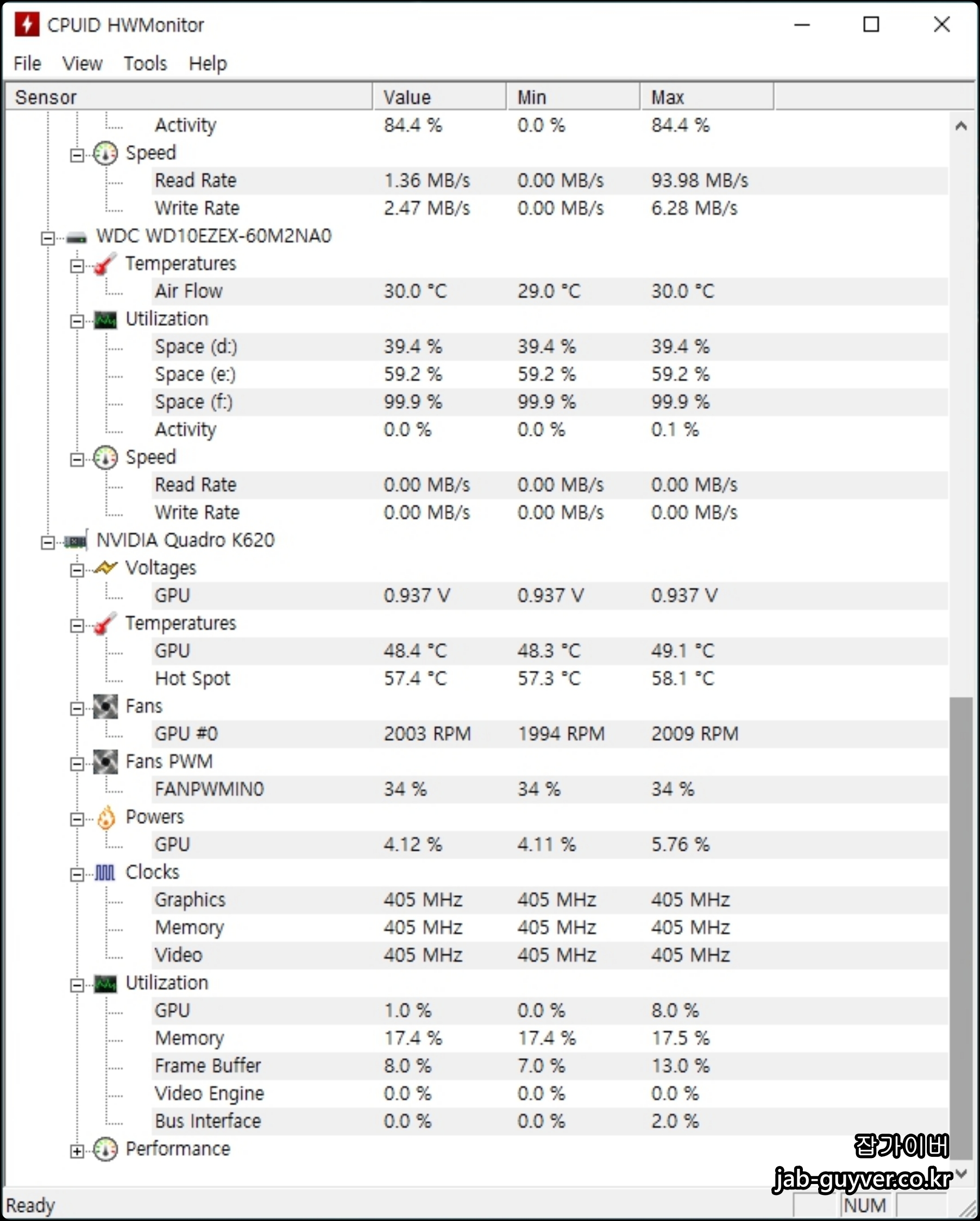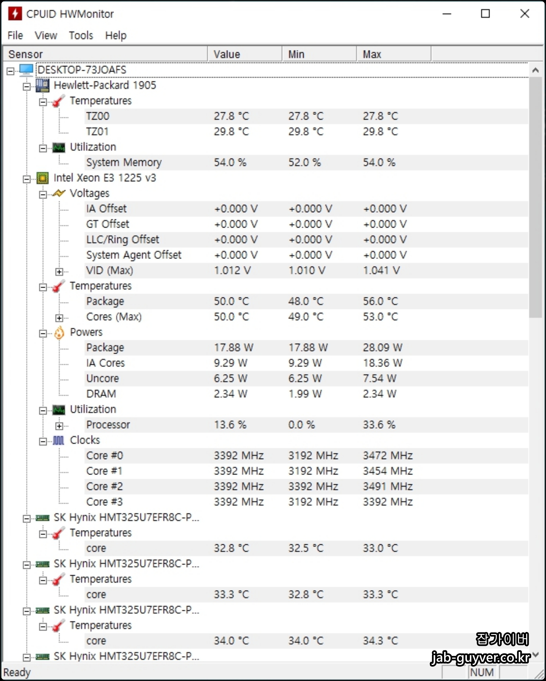 그리고 하드웨어모니터 "hwmonitor" 통해서도 컴퓨터 온도를 확인할 수 있습니다.