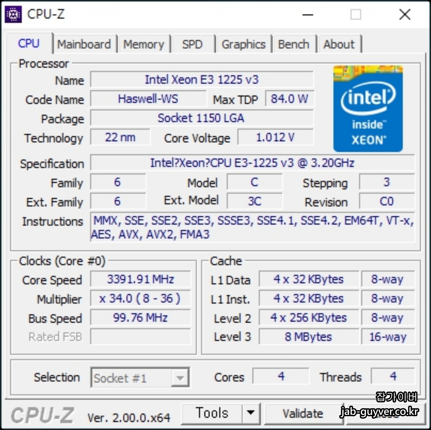 CPU Z를 실행하면 CPU 및 메인보드, 메모리카드, 그래픽카드 등 성능 및 온도 칩셋속도등을 확인할 수 있습니다.