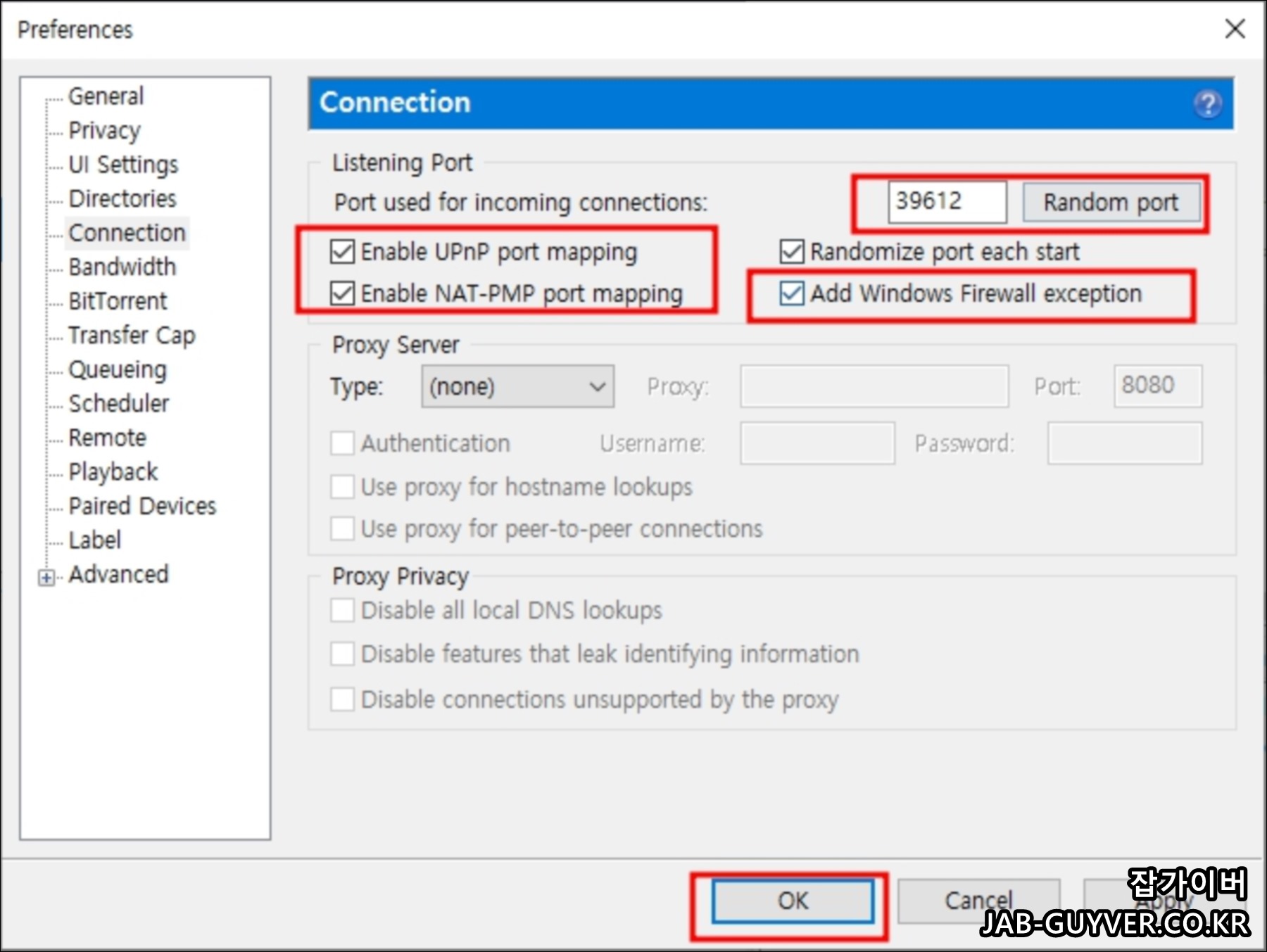 토렌트 Connecting To Peers 피어연결 오류 해결
