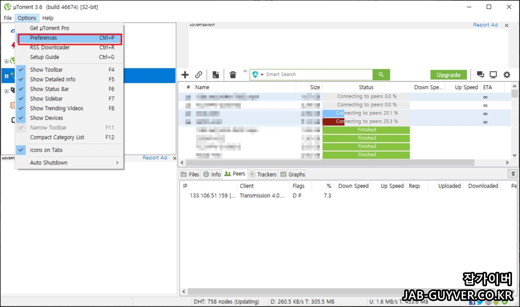 토렌트 한글판 설치 - 다운로드 속도느림 업로드 속도제한