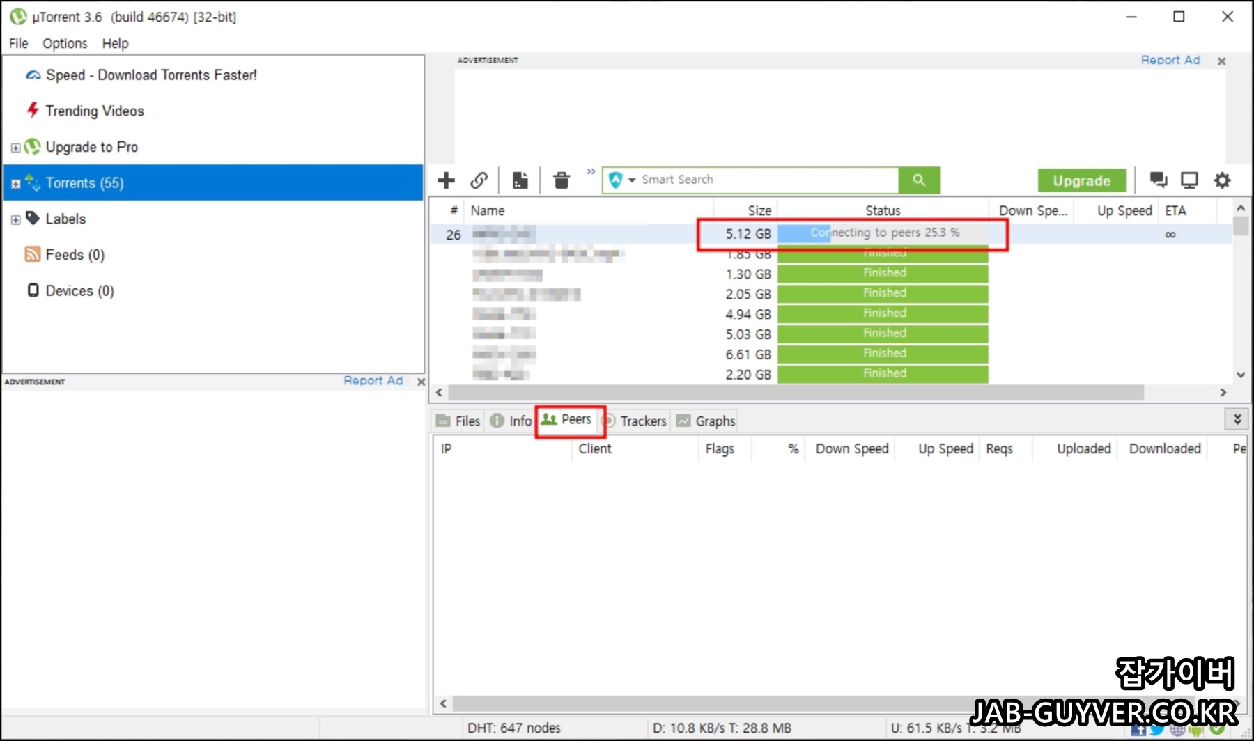 토렌트로 영화나 게임 등 다양한 프로그램을 다운로드 받을 때 간혹 Connecting To Peers 라는 알림과 함께 토렌트 다운로드가 되지 않는 경우가 있습니다. 그 이유는 토렌트에서 다운로드를 받기 위해서는 씨드와 피어 2가지가 있어야 하는데 계속 토렌트에서 피어를 연결하기서 찾기만하고 다운로드가 되지 않느것인데 이 토렌트 다운로드 안되고 계속 Torrnet Connecting To Peers 문구만 뜬다면 해결방법을 알아봅니다.