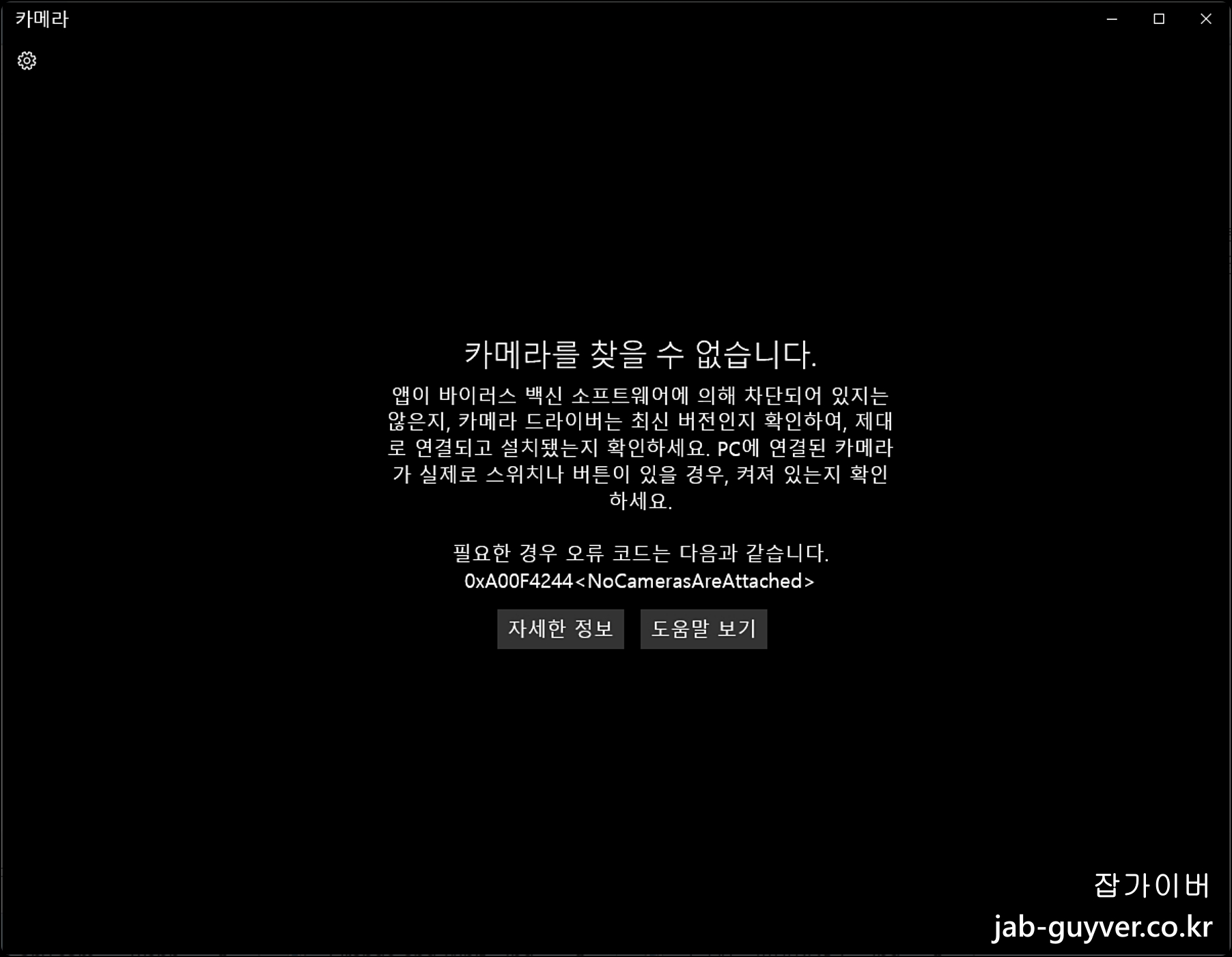 0xa00f4244<NoCamerasAreAttached> 오류코드가 뜬다면 컴퓨터에 카메라 연결되어 있지 않거나