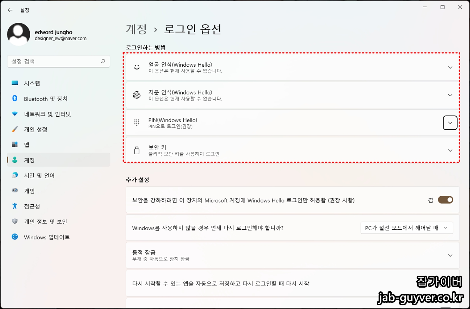 얼굴인식이 막혀도 PIN은 대체 로그인으로 쓰기 좋습니다. 설정 > 계정 > 로그인 옵션에서 PIN을 미리 만들어 두면, 얼굴인식이 흔들릴 때도 로그인 자체는 막히지 않습니다.
