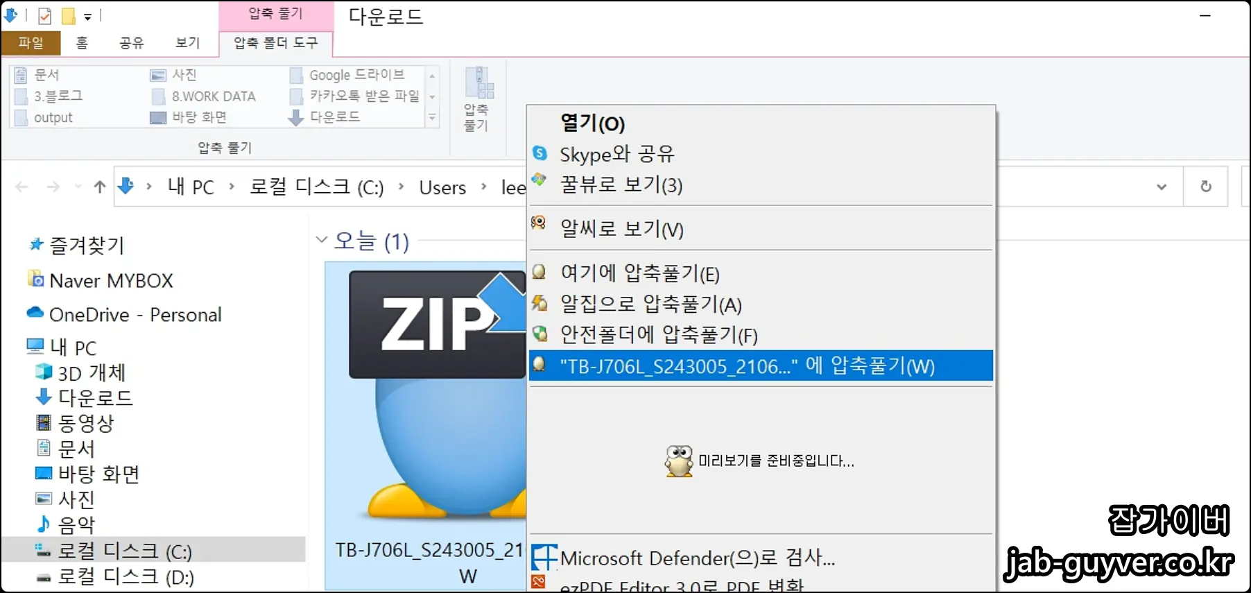 다운로드 후 zip파일을 압축을 해제합니다.