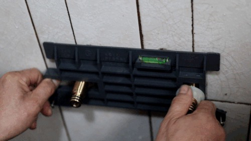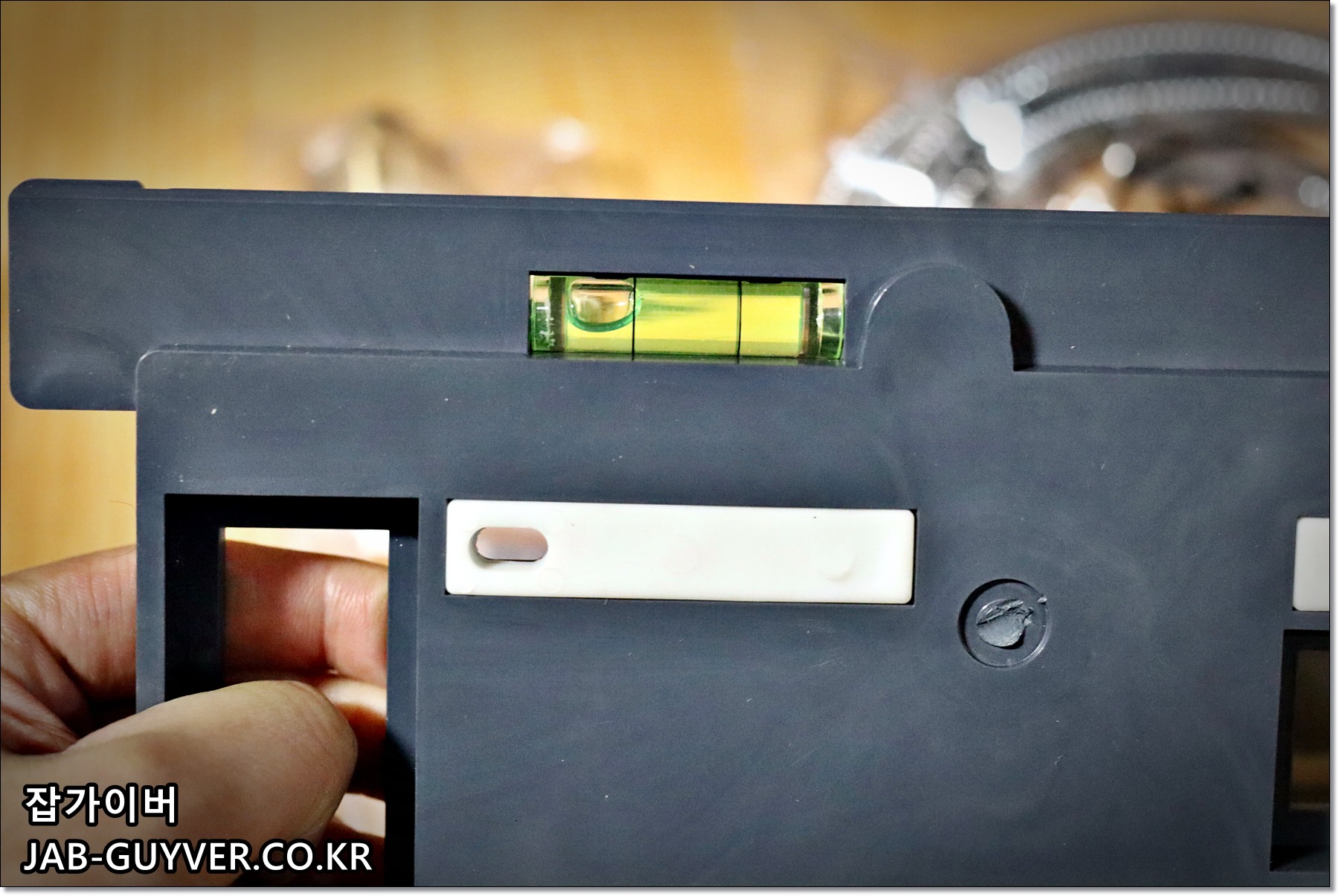 이후 플레이트를 넣어 왼쪽은 가로방향 오른쪽은 세로방향으로 움직여 수평을 맞춰준 뒤 브라켓으로 고정시켜줍니다.