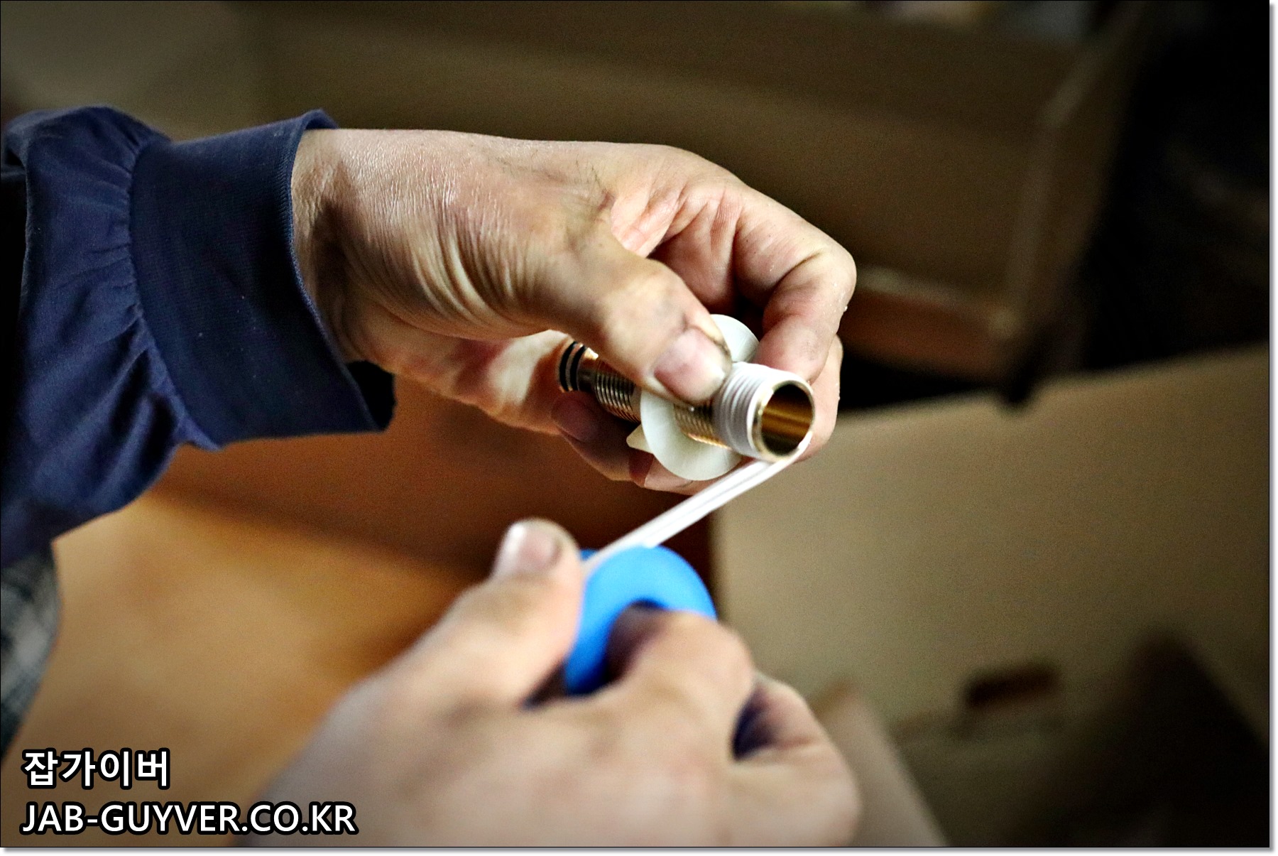 테프론 테이프를 통해 밸브를 감아줍니다.