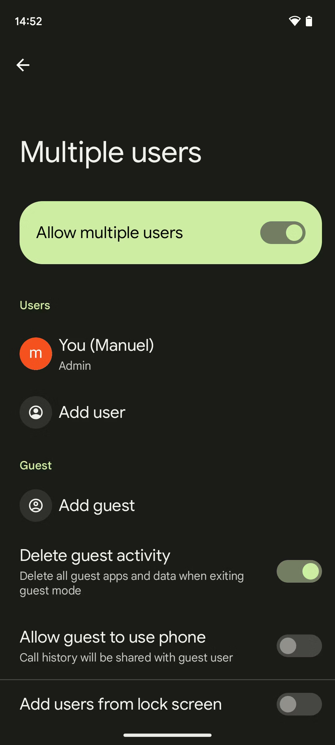 다중 사용자 설정 화면에도 약간의 수정이 있습니다. 여기서 게스트의 전화 사용 허용 옵션이 최상위 메뉴로 이동되어 스마트폰을 사용하는 모든 사용자에게 더 쉽게 전화를 걸 수 있습니다. 이전에는 이 옵션이 Guest 계정 뒤에 있었기 때문에 가장 직관적인 위치가 아니었습니다.