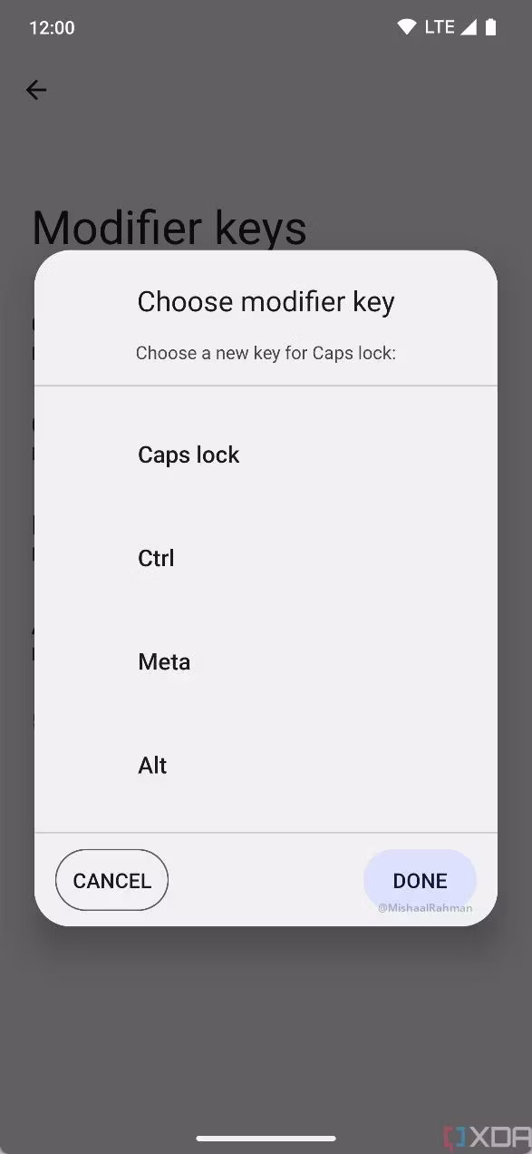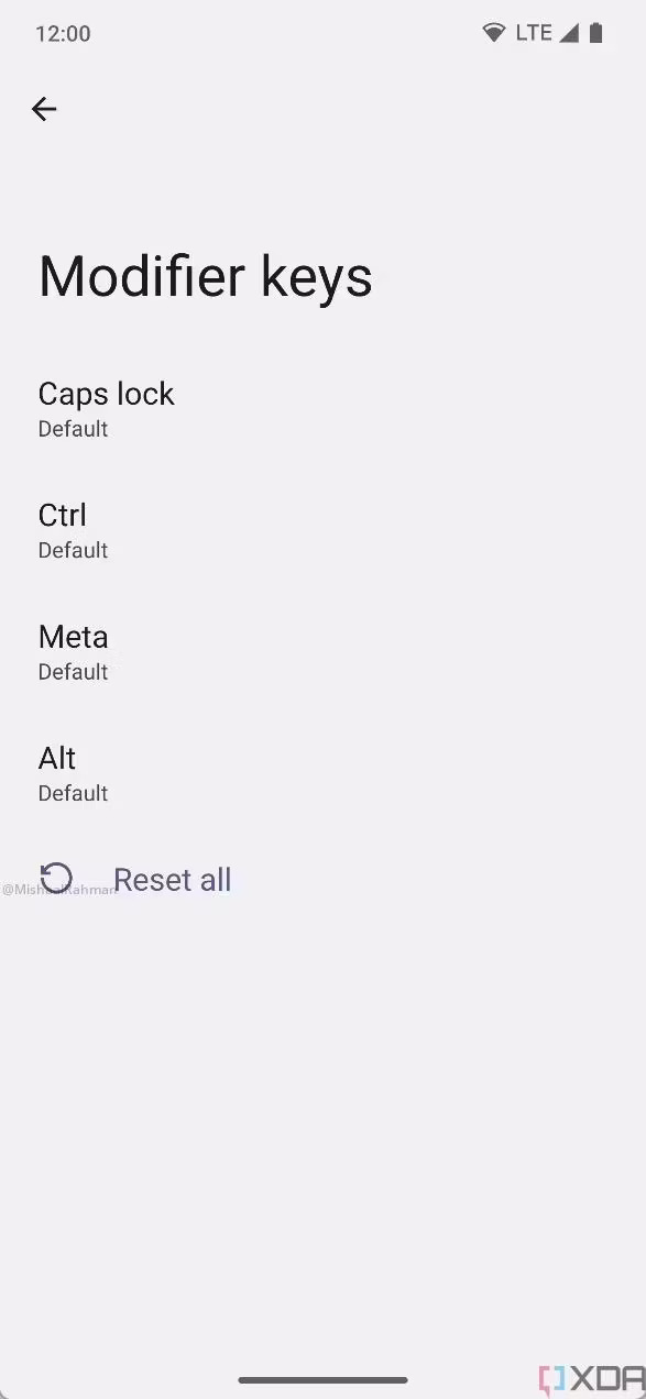 XDA용 Android 전문가 Mishaal Rahman이 작성한 결과에 따르면 Android 14는 Ctrl, Alt 및 Meta(Windows 메뉴에 사용되는 단추)와 같은 수정자 키를 다시 매핑할 수 있습니다. 또한 최근 화면 액세스, 음소거 및 확대/축소와 같은 다양한 시스템 수준 옵션에 대한 더 많은 명령을 키보드에 매핑할 수도 있습니다.