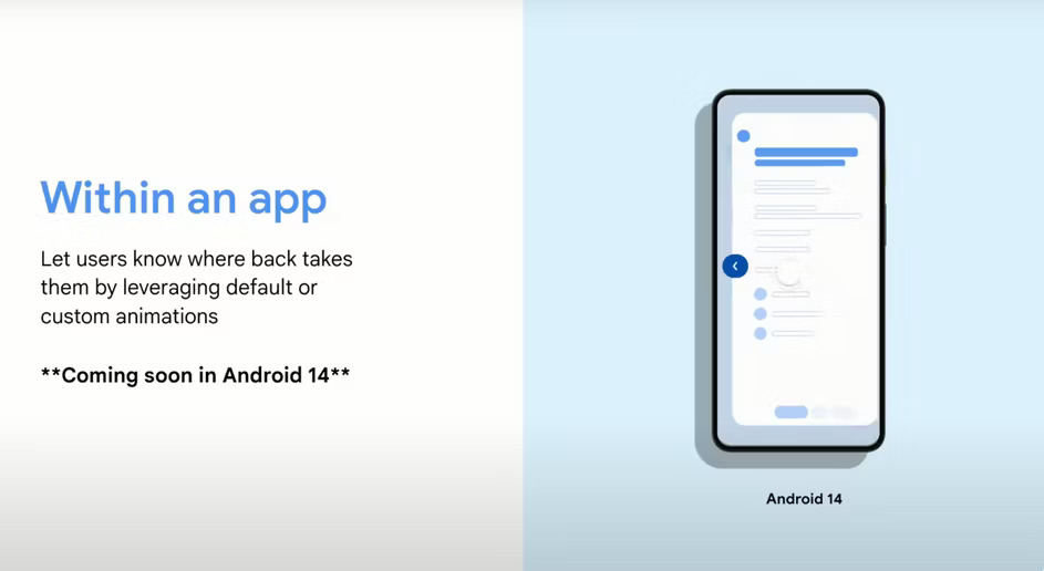 하지만 그 이후로, 그 회사는 제스처 내비게이션에 대해 작은 수정만 했을 뿐, 작동 방식을 완전히 재창조한 적은 없습니다. 이 회사는 현재 제스처가 작동하는 방식을 고수할 것으로 보이지만, 구글이 Android Dev Summit 패널에서 공유한 것처럼 안드로이드14 는 예측 가능한 뒤 제스처의 형태로 심각한 업그레이드를 제공할 것입니다. 시스템은 뒤로 제스처를 사용할 때 다음 화면으로 이동할 화면을 보여주는 새 애니메이션을 제공합니다. 이 기능은 앱 내에서 작동하며 다음 이동 시 홈 화면으로 이동합니다.