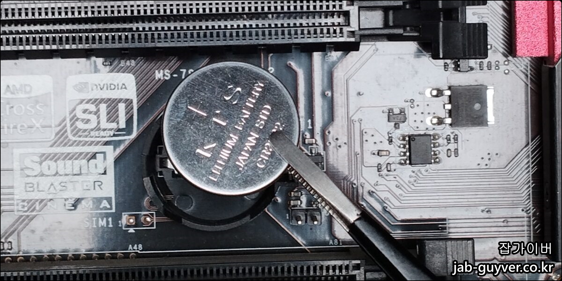 컴퓨터를 종료하고 컴퓨터 케이스에 연결된 모든 케이블을 분리한 뒤 메인보드 시모스 초기화를 진행하느것을 권장합니다.