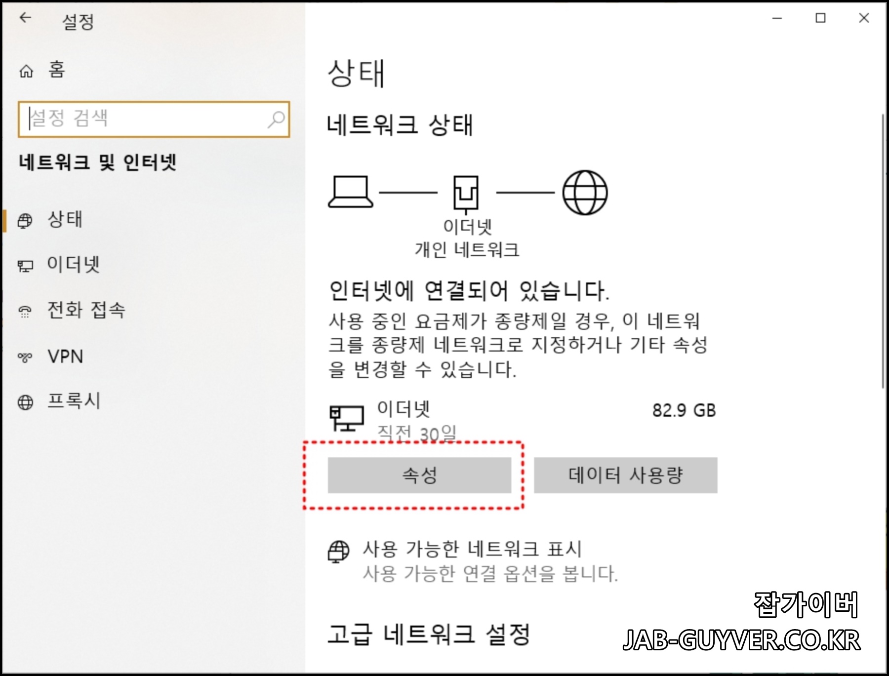 아니면 윈도우 검색창에 네트워크 상태를 들어갑니다.