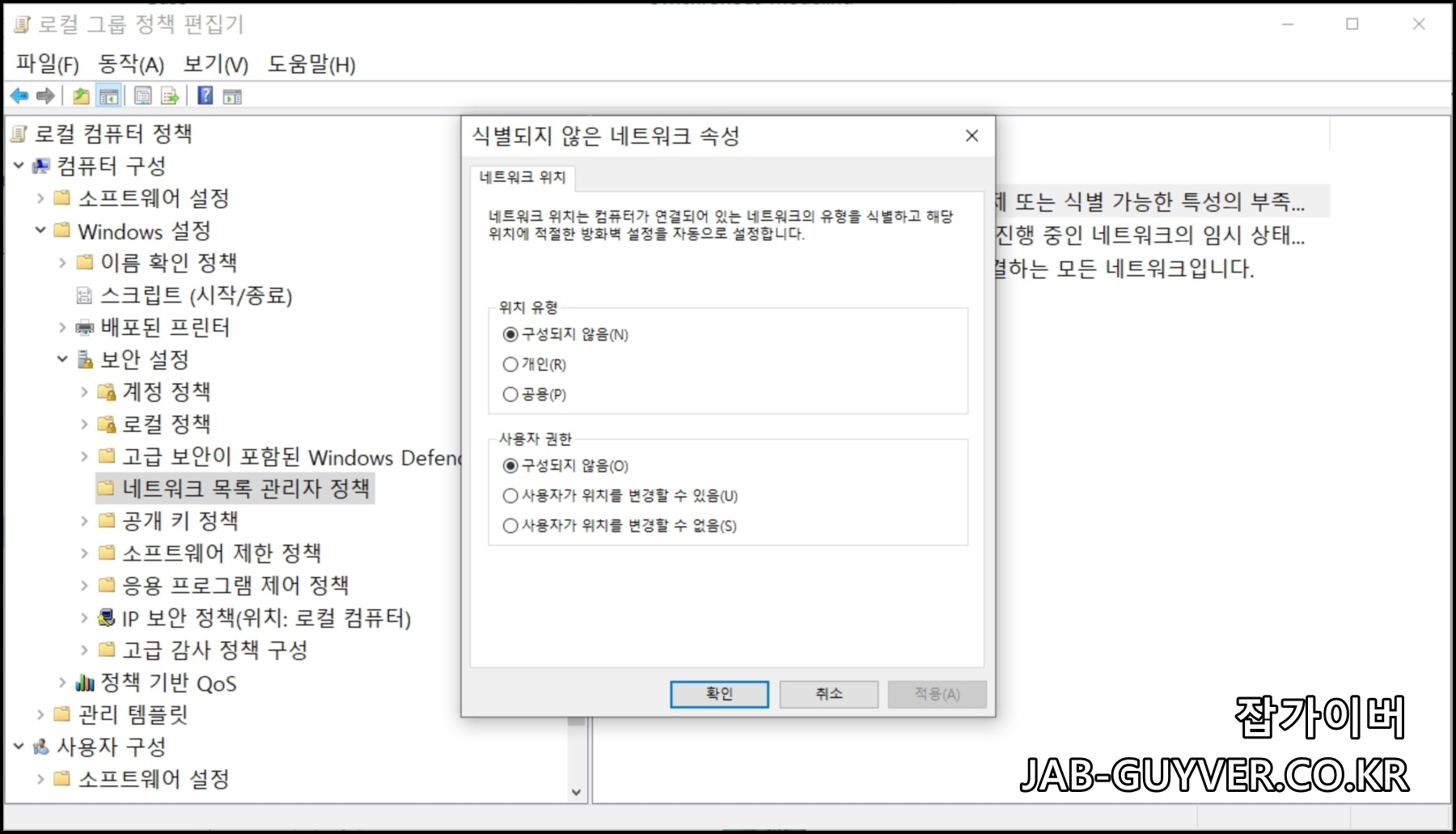 그룹정책 편집기 네트워크 프로필 변경
