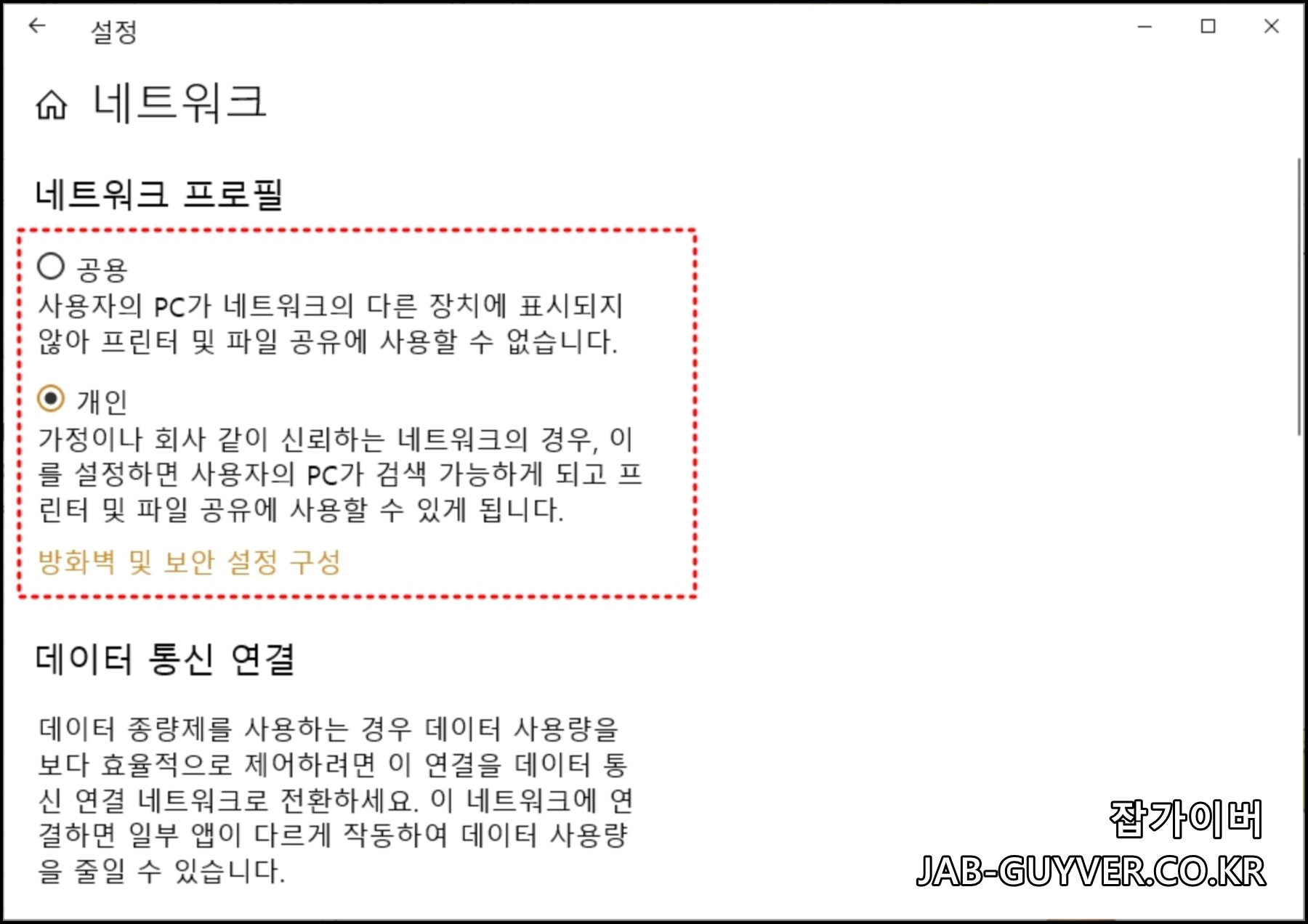 윈도우 네트워크 프로필 변경 - 개인 공용 도메인 설정 차이점