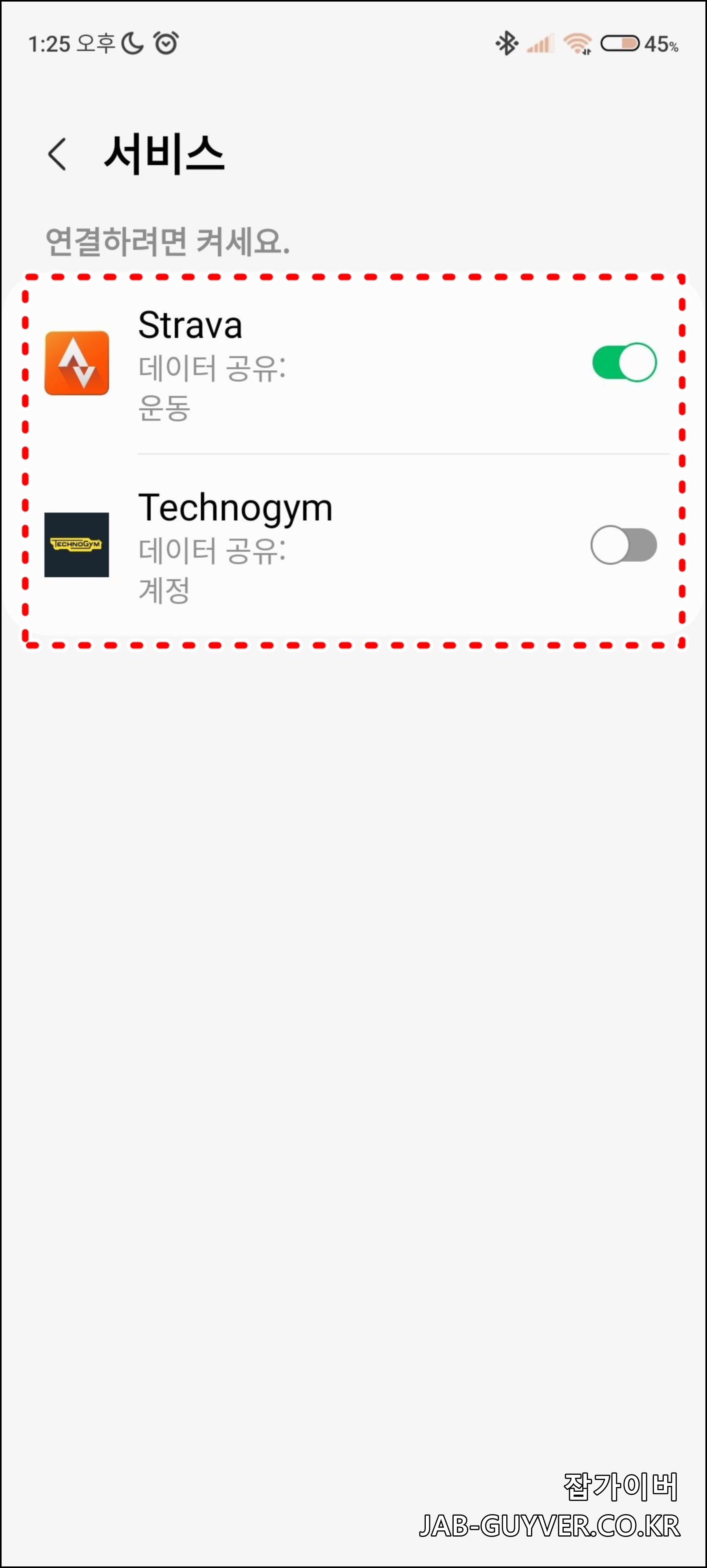 스트라바의 경우 서비스 탭에서 Strava 앱과 동기화 바로 할 수 있습니다.