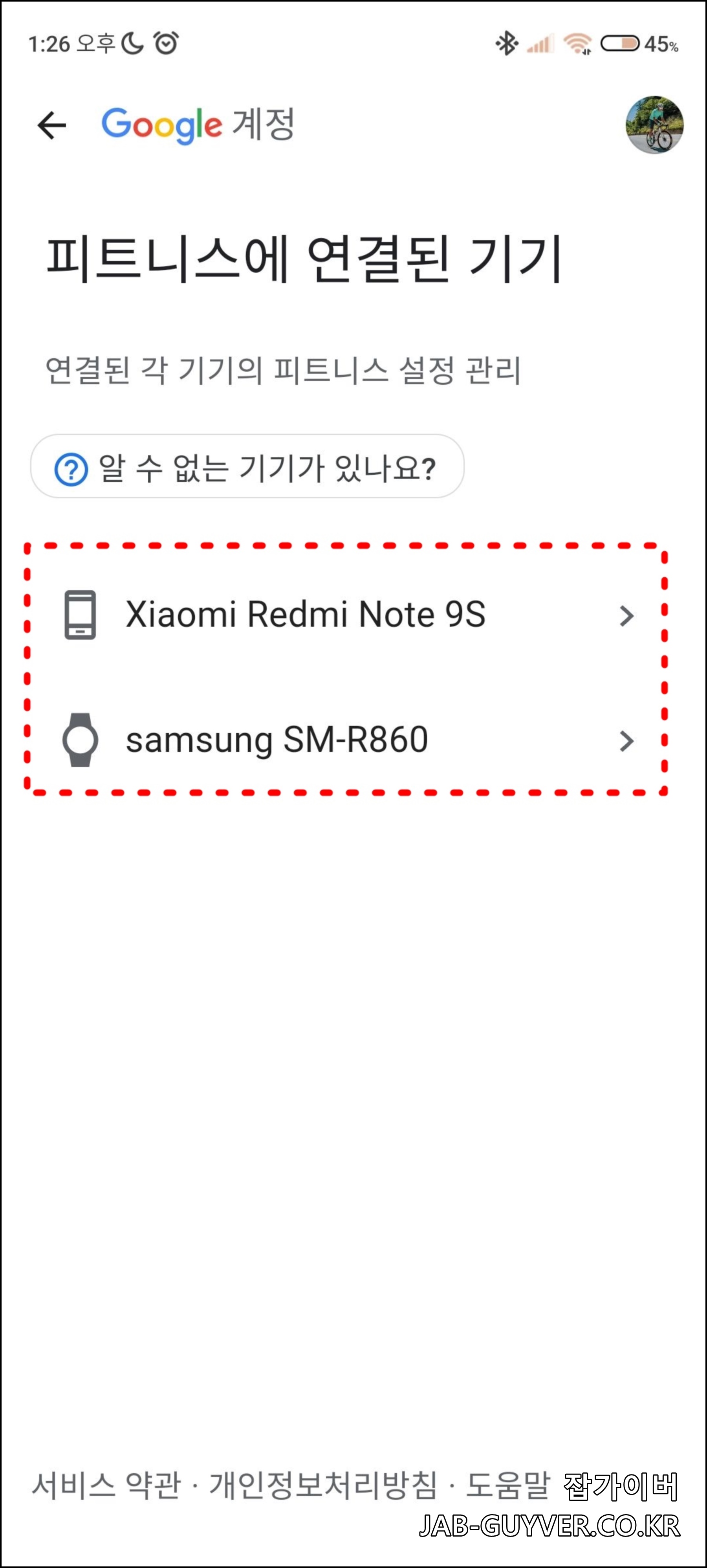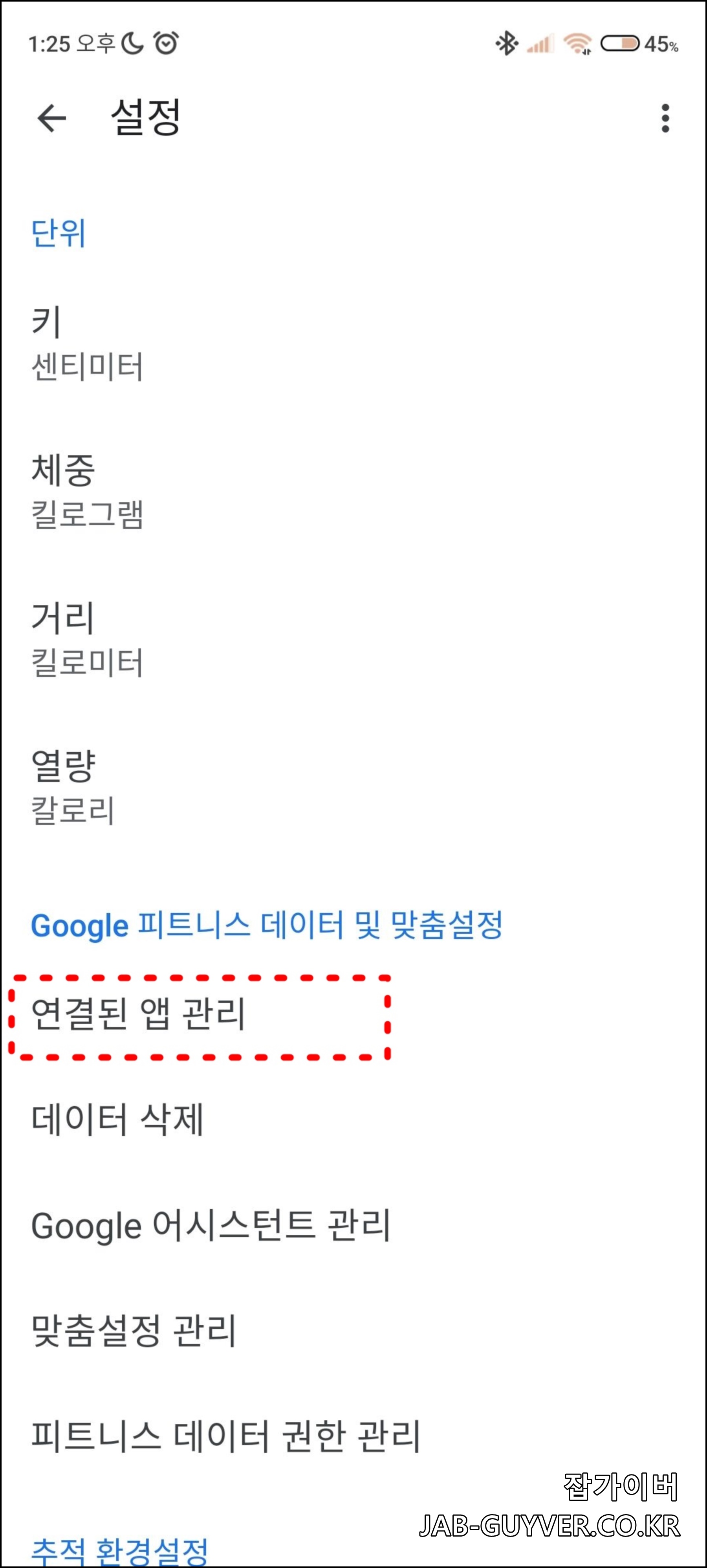 구글 피트니스의 운동은 프로필 -> 연결된 앱관리로 들어갑니다.